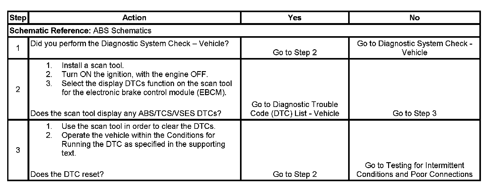2. Verifies whether other ABS/TCS/VSES DTCs are set.