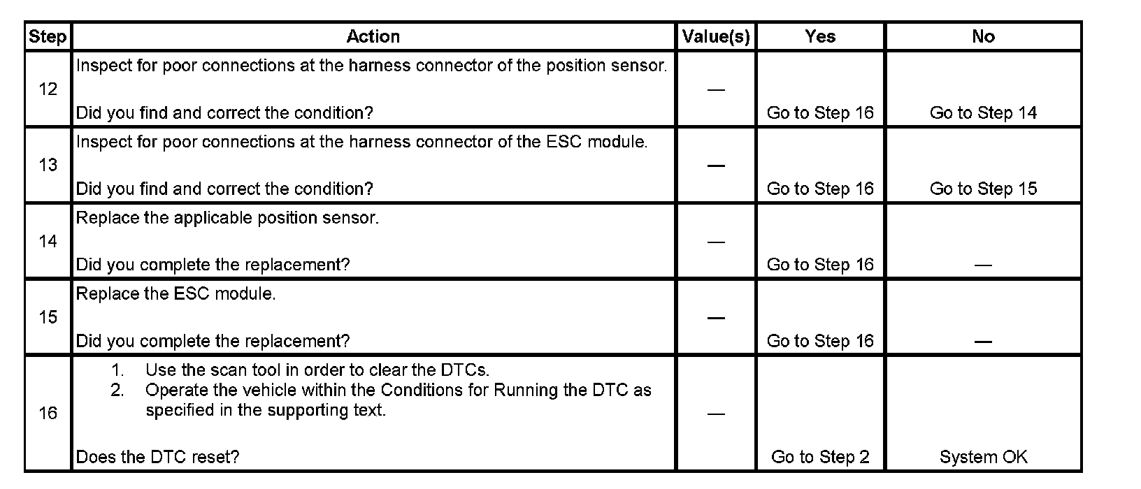 ^ The ESC module uses an ignition cycle counter diagnosis approach to set this DTC. This requires the ESC module to detect a malfunction 4 times before setting the DTC. To disable this feature, use a scan tool to clear all DTCs before performing diagnosis procedures.