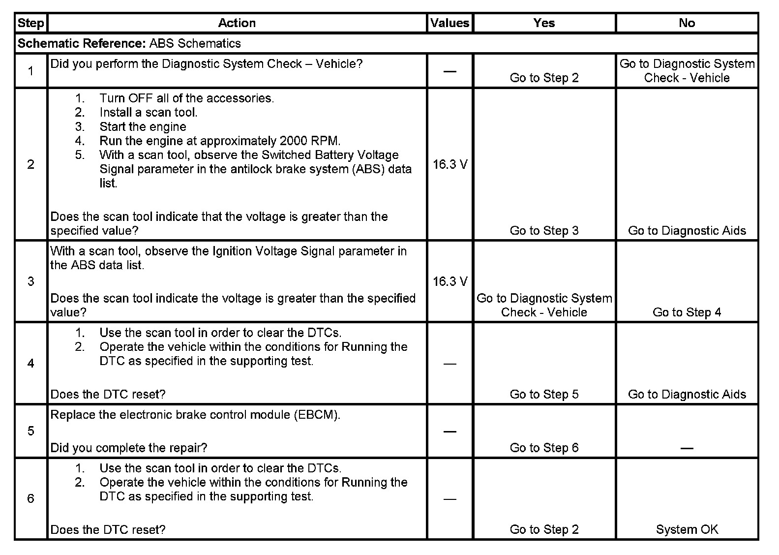 ^ The EBCM automatically clears the history DTC when a current DTC is not detected in 100 consecutive drive cycles.