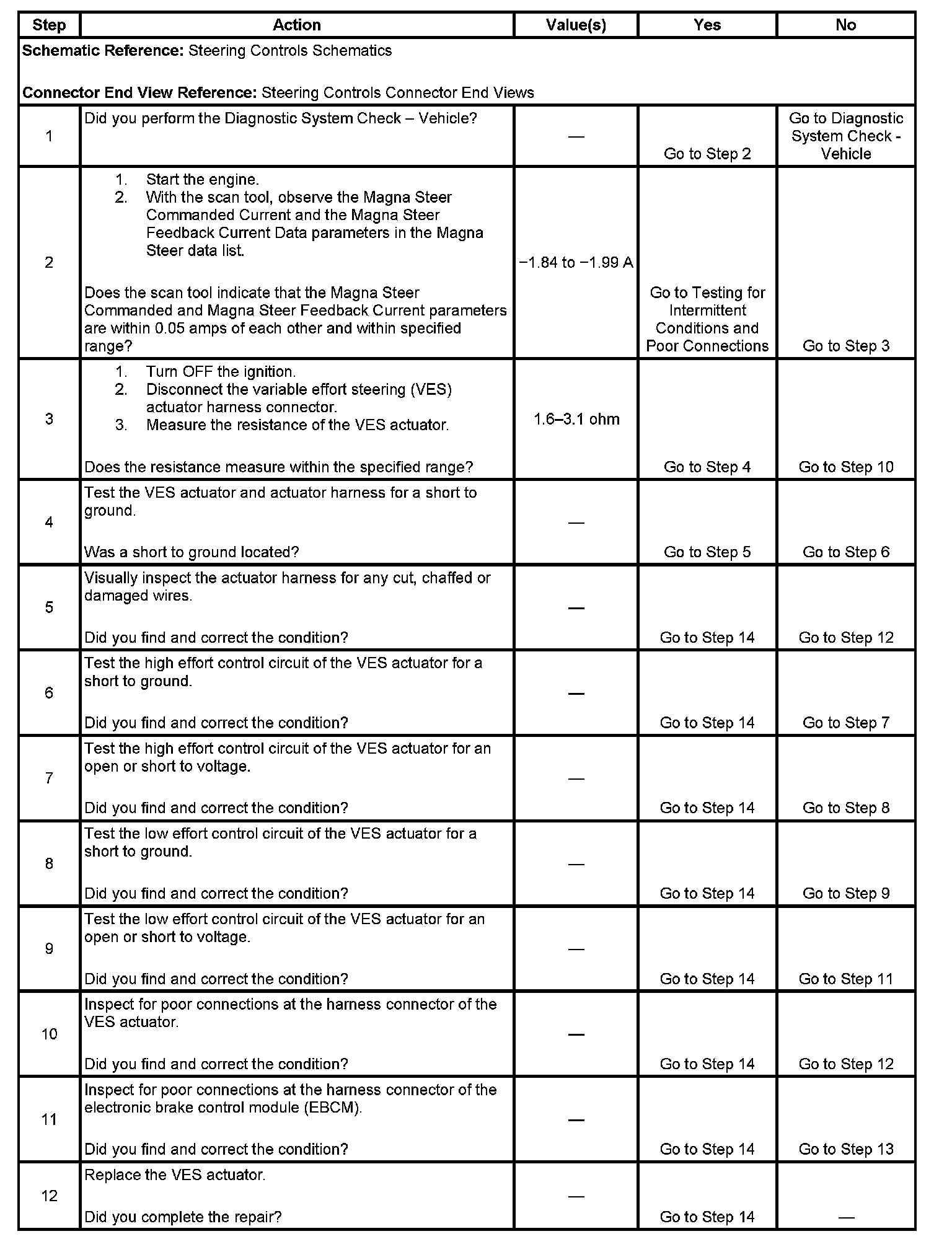 3. This step tests if the resistance of the VES actuator is in the specified range.