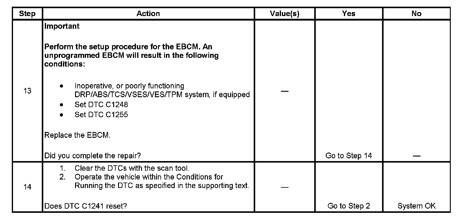 ^ A DTC C1241 is stored in memory.
