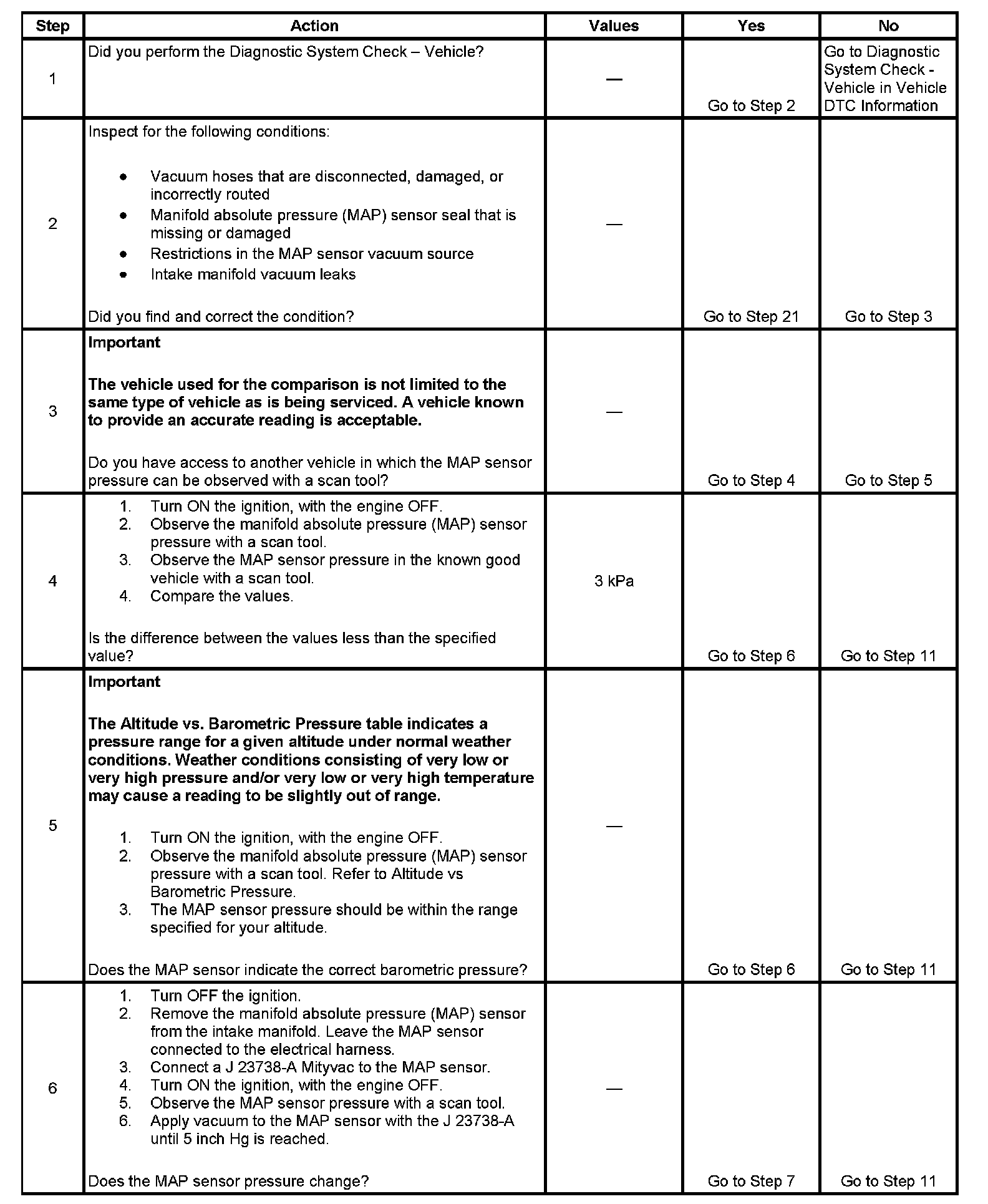 6. This step tests the ability of the MAP sensor to respond to an increase in engine vacuum.