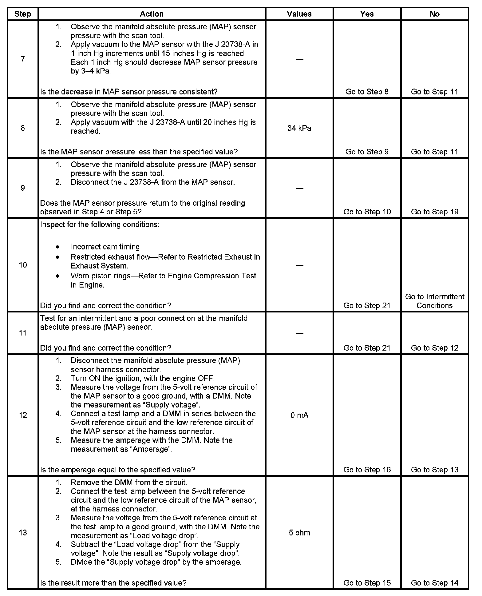 8. This step tests for a proper MAP sensor pressure with an applied vacuum.