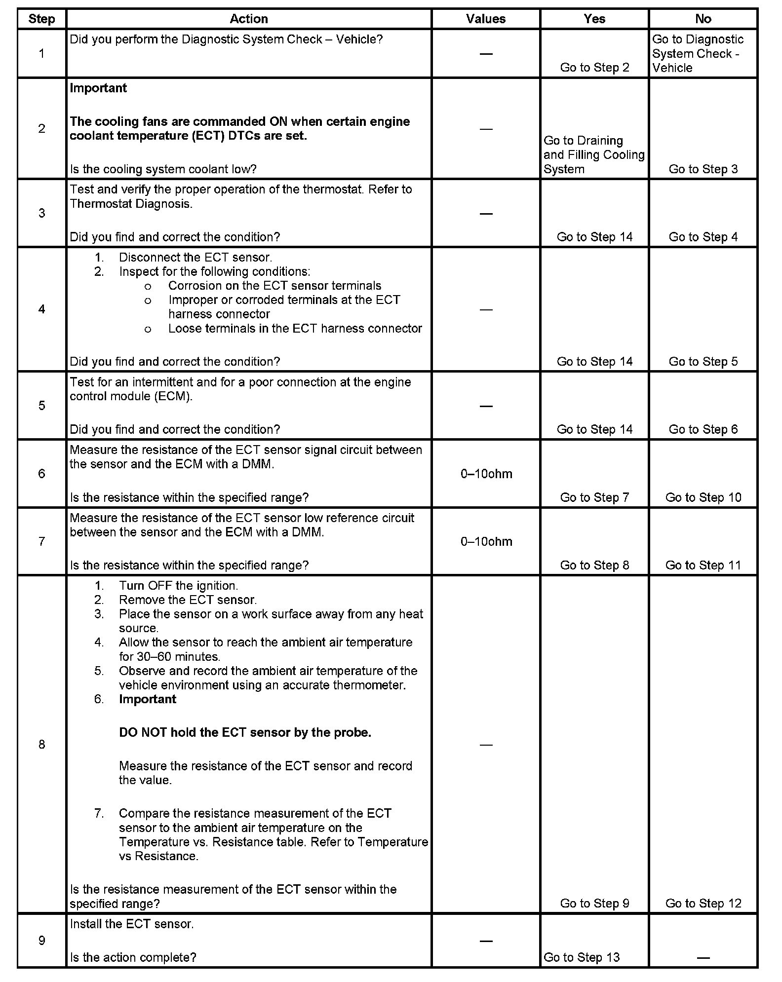 An engine coolant temperature (ECT) sensor monitors the temperature of the coolant. This input is used by the engine control module (ECM) for engine control, and as an enabling criteria for some diagnostics.