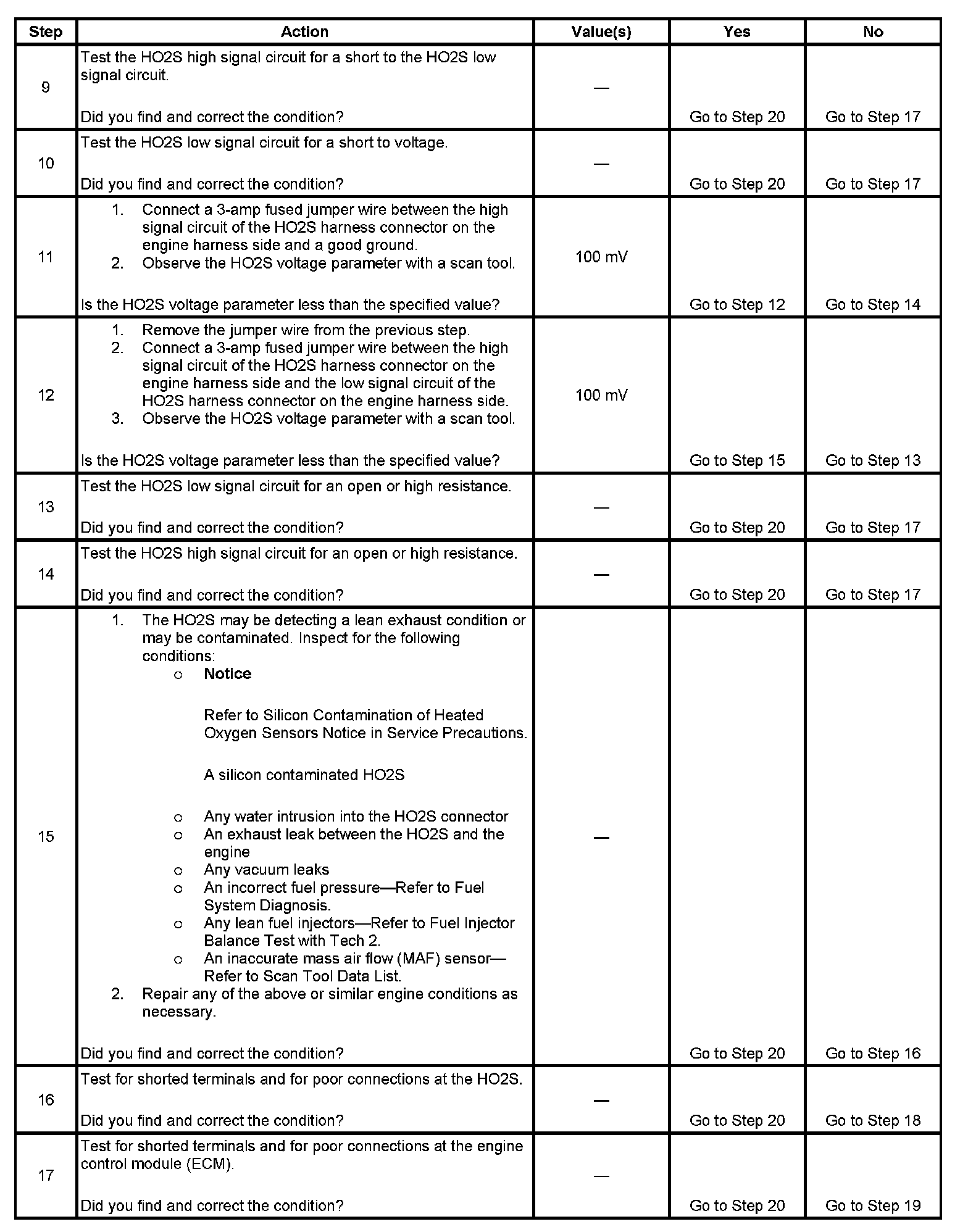 2. If the voltage does not change more than the specified value, the condition is present.
