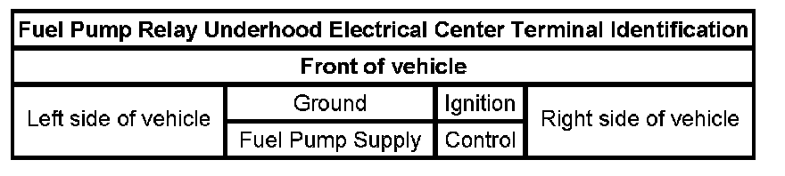 When the ignition switch is turned ON, the control module enables the fuel pump relay, which supplies current to the fuel pump. The fuel pump remains enabled as long as the engine is cranking or running and the control module receives ignition reference pulses. If there are no ignition reference pulses, the control module shuts the fuel pump OFF approximately 2 seconds after the ignition was switched to the ON position or if the engine stops. The control module monitors the voltage on the fuel pump relay control circuit. If the control module detects an incorrect voltage on the fuel pump relay control circuit, a fuel pump relay control DTC sets.