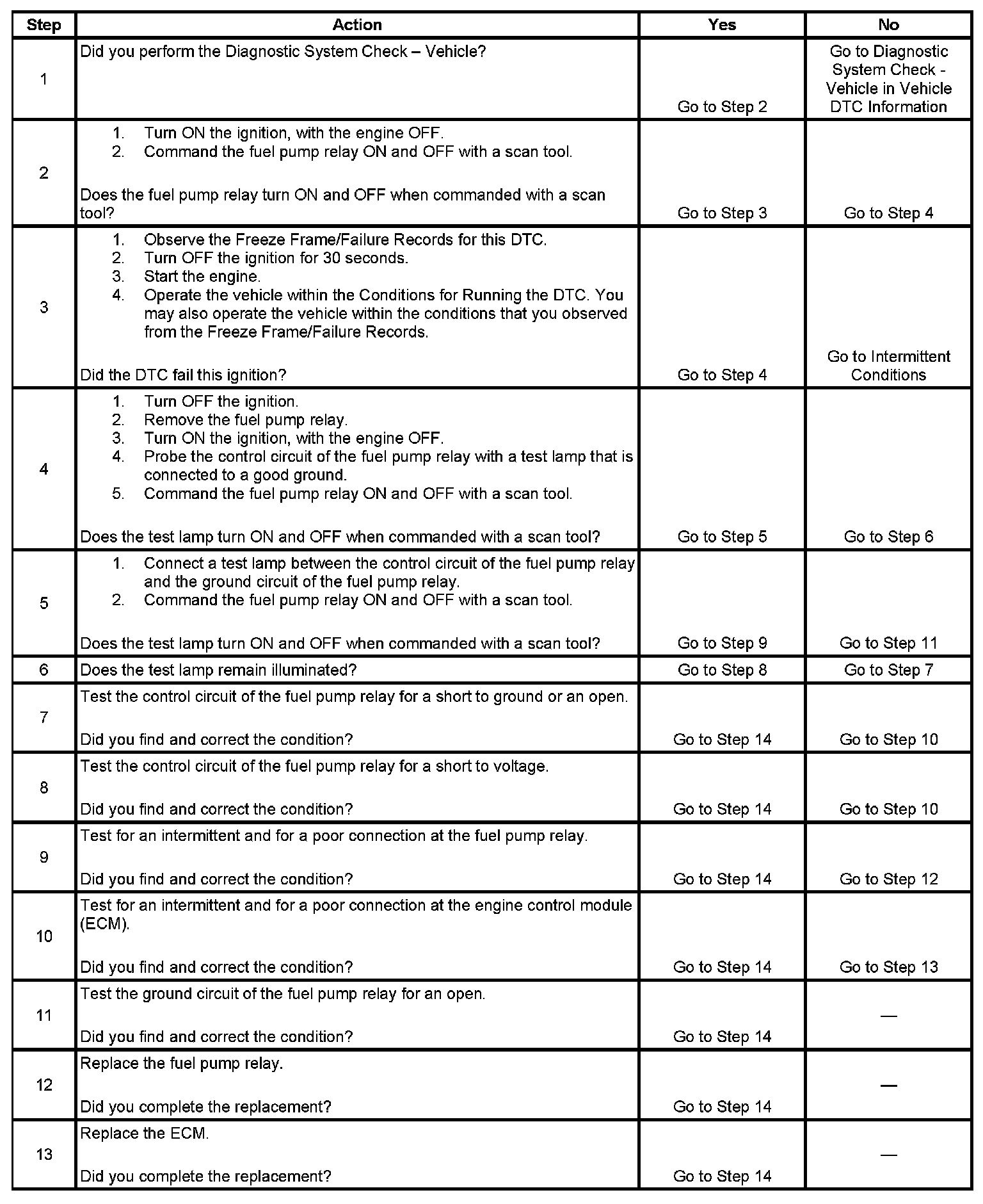 DTC P0230 Fuel Pump Relay Control Circuit