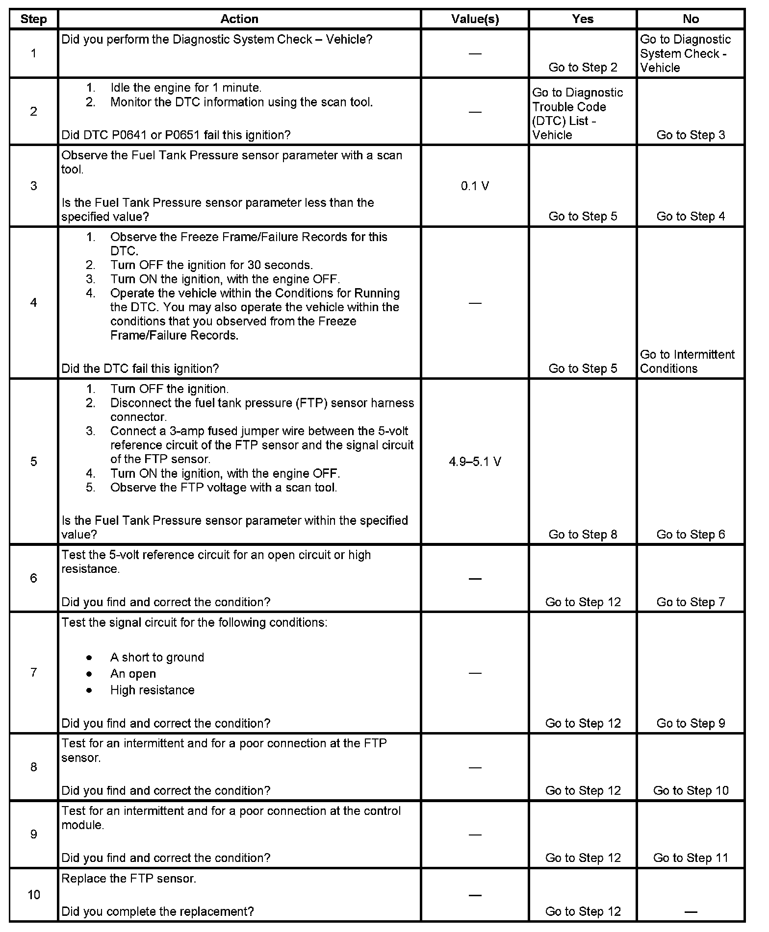- The FTP sensor voltage is less than 0.1 volts.