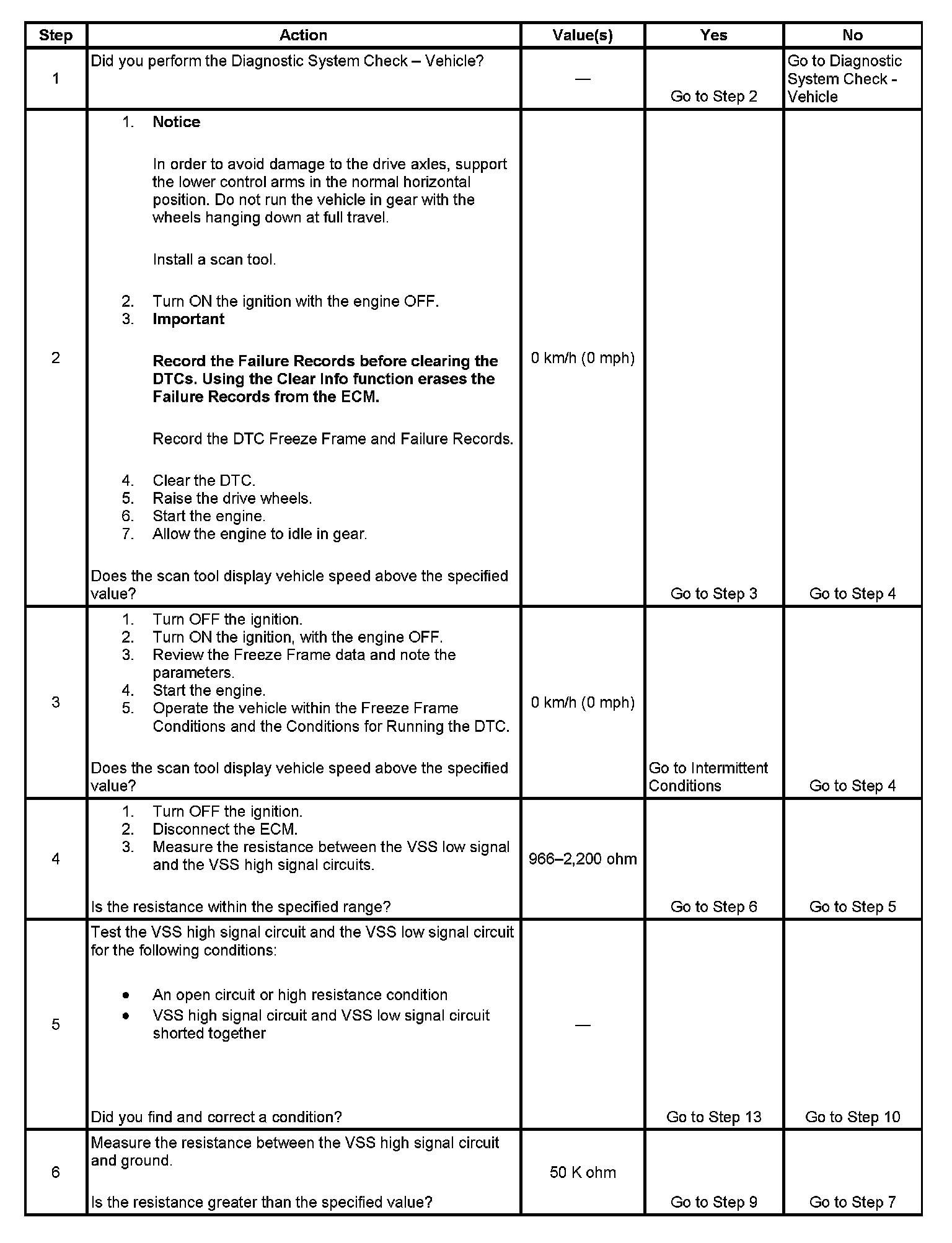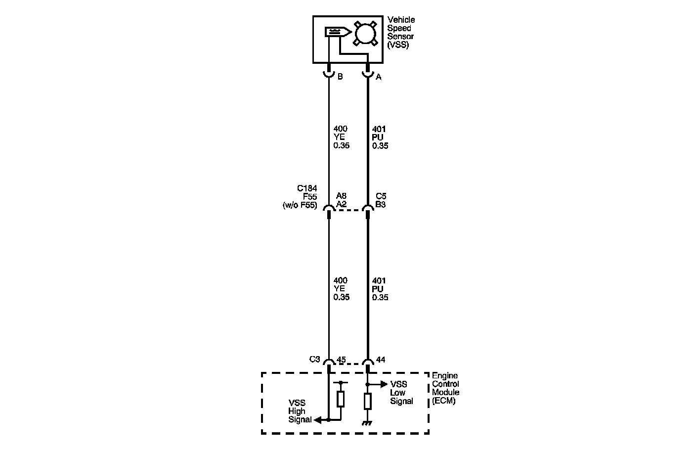 4. The vehicle speed detector in the ECM and the VSS are matched in such a way that an open or a short to ground in the VSS low signal circuit will not usually cause a loss of speed signal or a DTC P0502 to set.