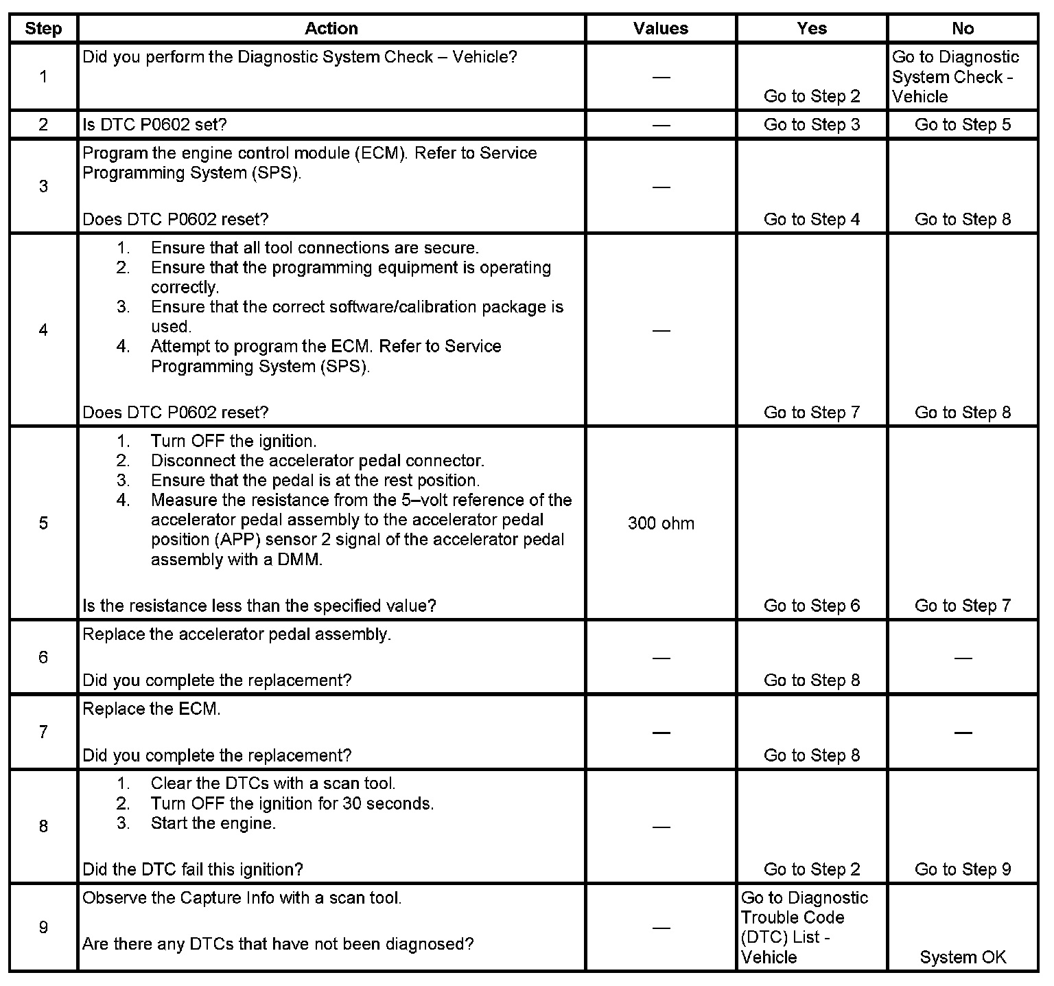 2. A DTC P0602 indicates that the ECM is not programmed.
