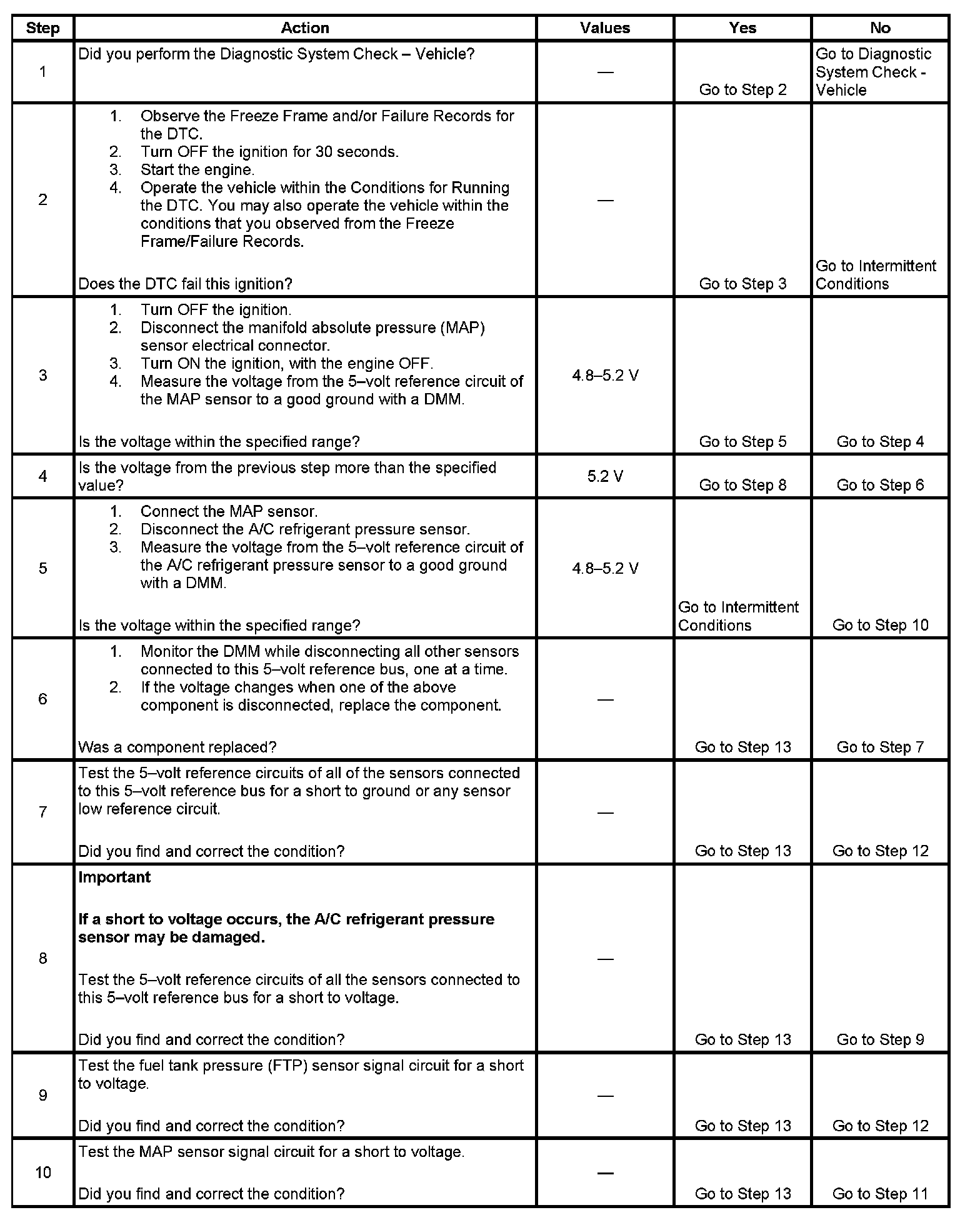 9. A short to voltage on the signal circuit of the FTP sensor will back feed through the sensor into the 5-volt reference circuit and set this DTC.