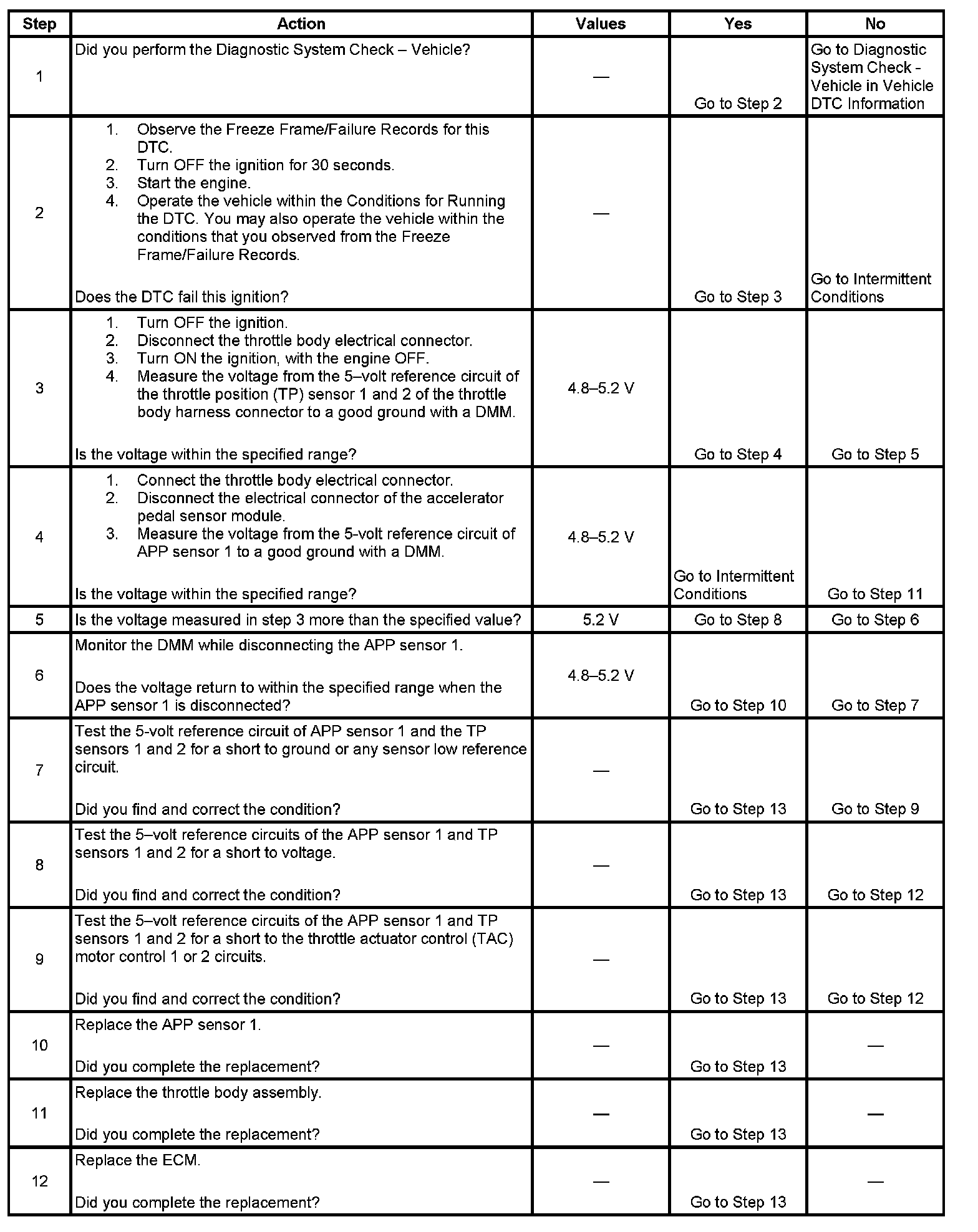 The ECM detects a voltage out of tolerance condition on the 5-volt reference circuit for more than 0.5 seconds.