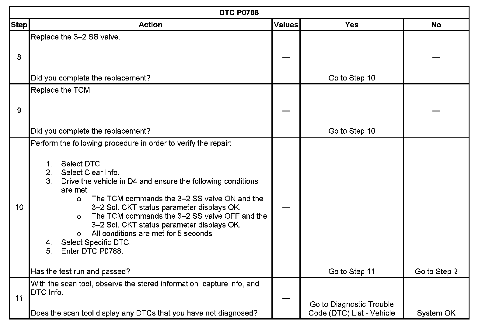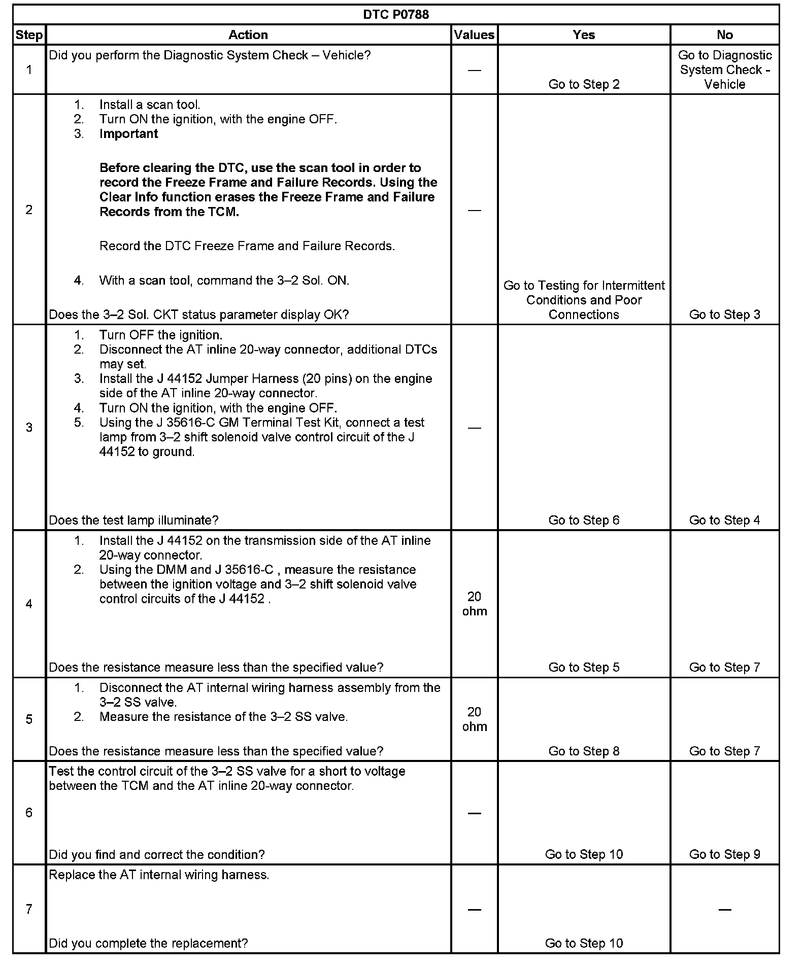 When the TCM detects a continuous short to voltage in the 3-2 shift solenoid valve control circuit, then DTC P0788 sets. DTC P0788 is a type A DTC.