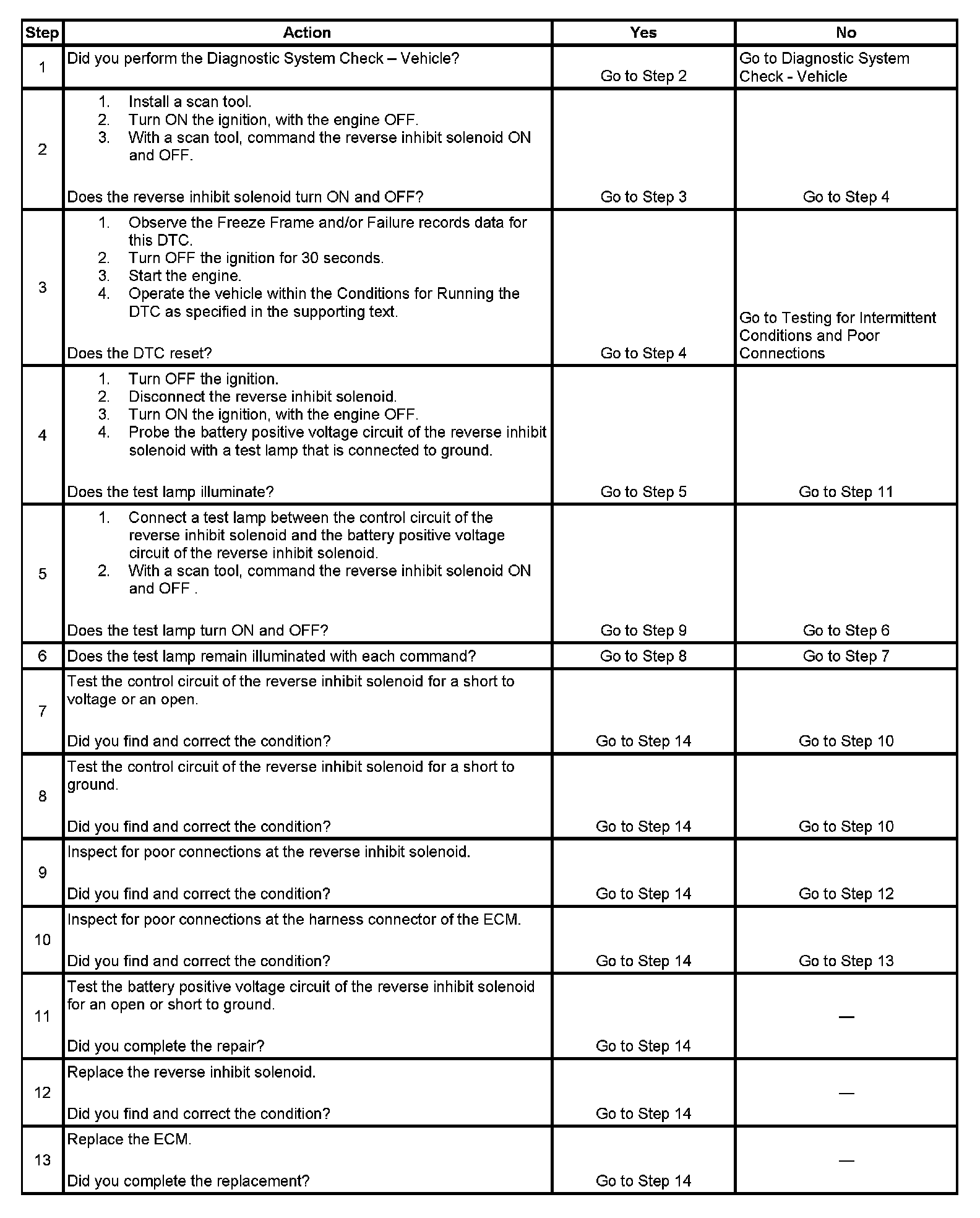 5. Verifies that the ECM is providing ground to the reverse inhibit solenoid.