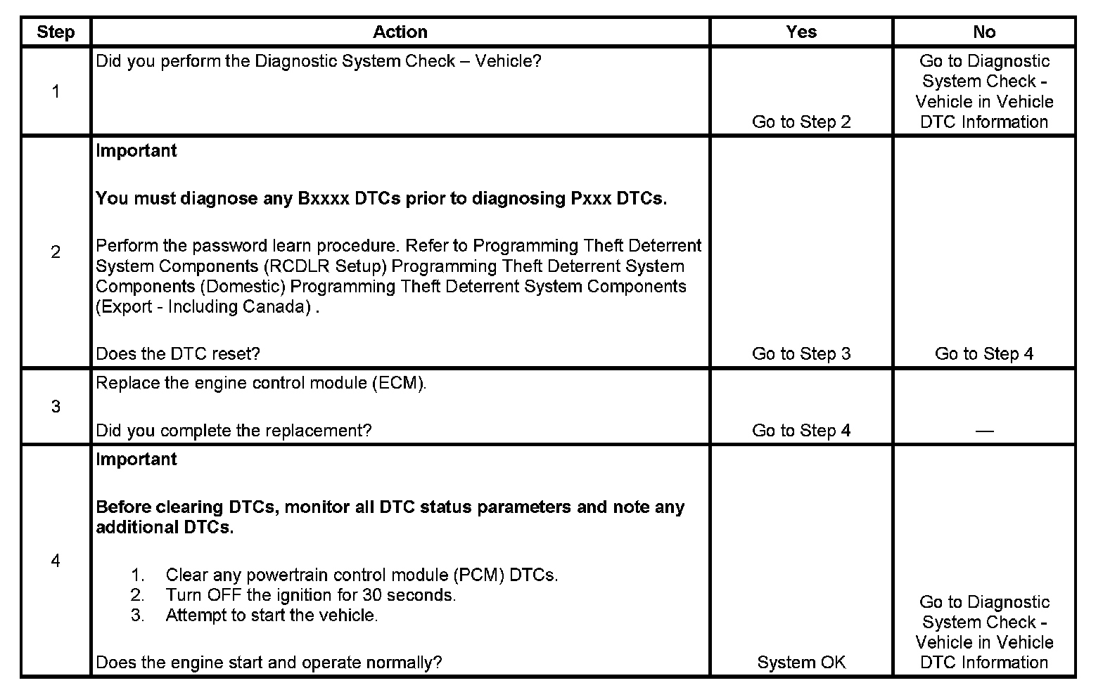 A GM SPO replacement ECM is in a functional state to learn the password from the RCDLR. If the RCDLR is replaced, the ECM must be placed in password learning mode to relearn the new password. Once learned, the password becomes permanent information that remains in the ECM. The loss of ECM battery or ignition voltage does not affect the programmed password information. Refer to Programming Theft Deterrent System Components (RCDLR Setup) Programming Theft Deterrent System Components (Domestic) Programming Theft Deterrent System Components (Export - Including Canada).