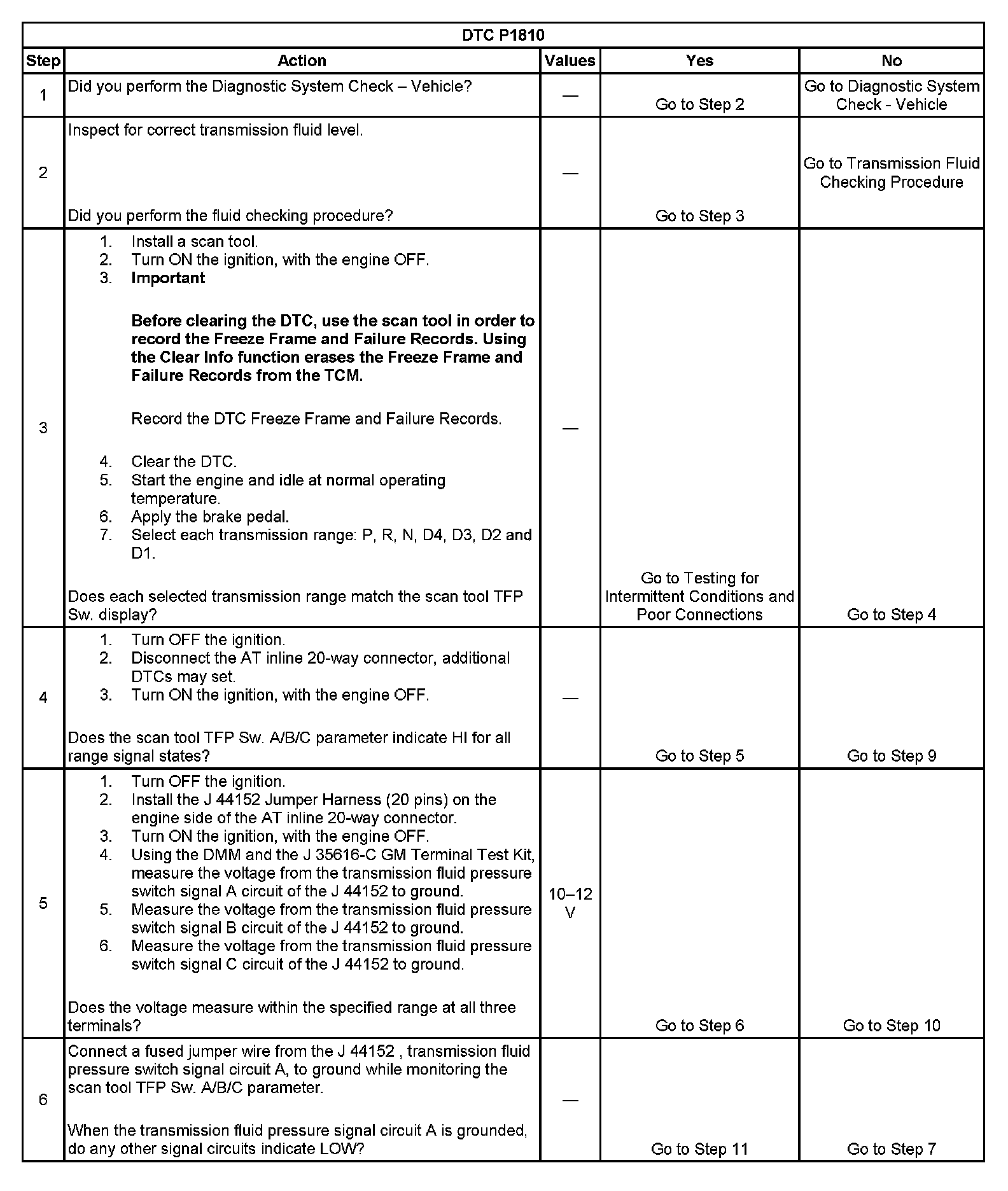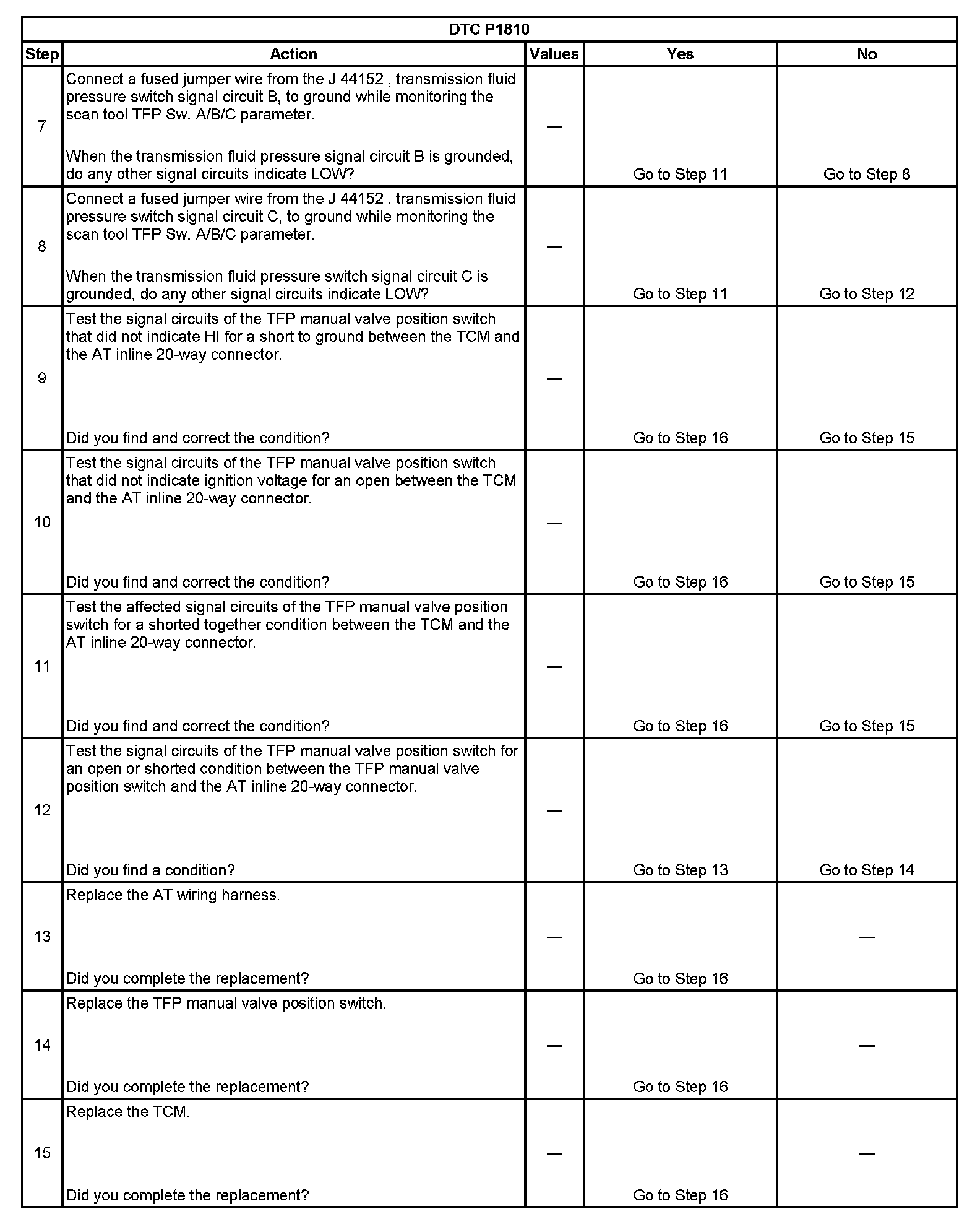 DTC P1810 sets when the TCM detects an invalid TFP manual valve position switch state for 60 seconds.