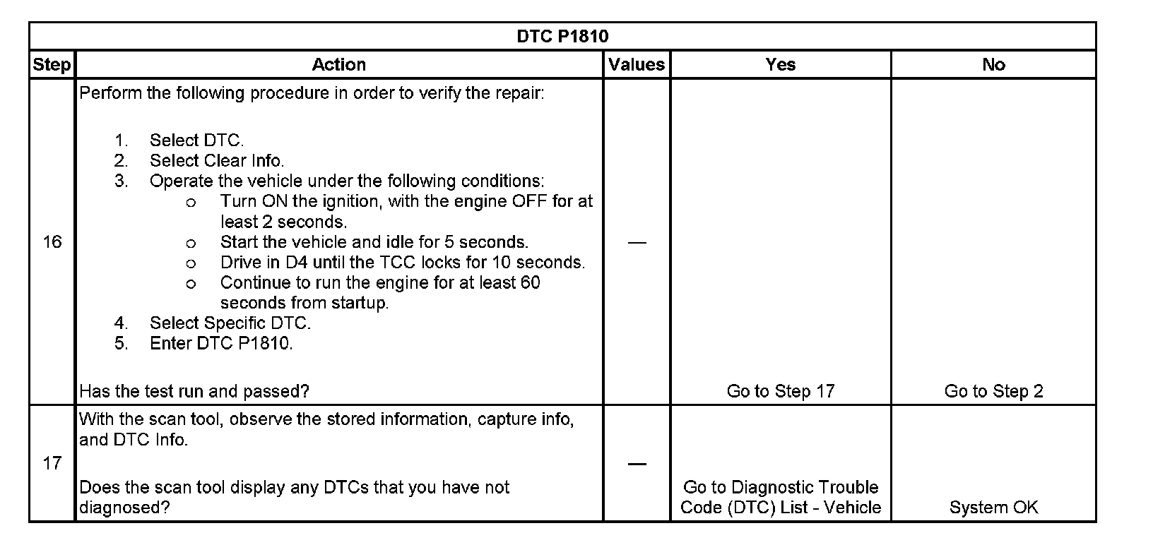 ^ The TCM stores DTC P1810 in TCM history during the second consecutive trip in which the Conditions for Setting the DTC are met.
