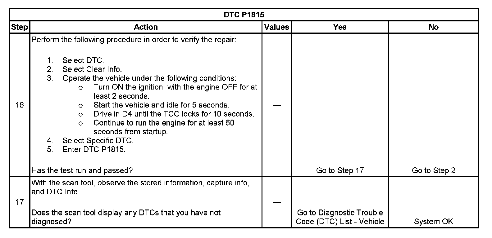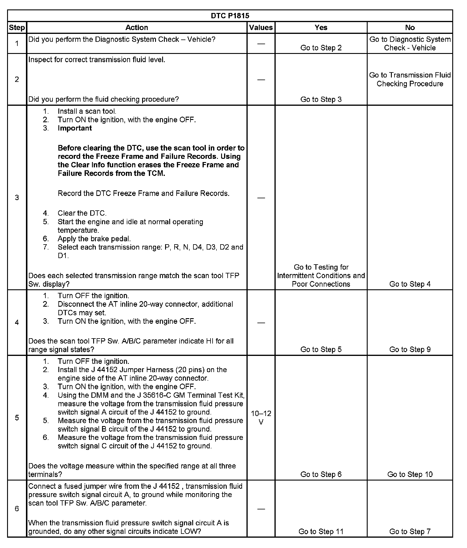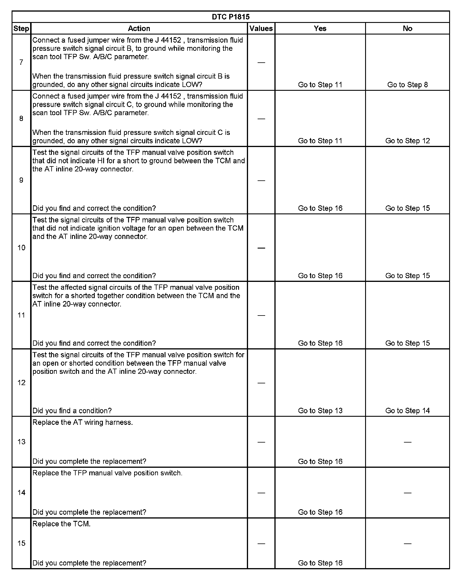 ^ No TFP DTCs P1810 or P1815.