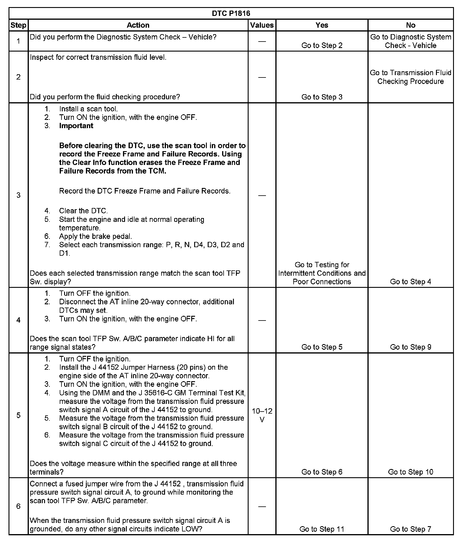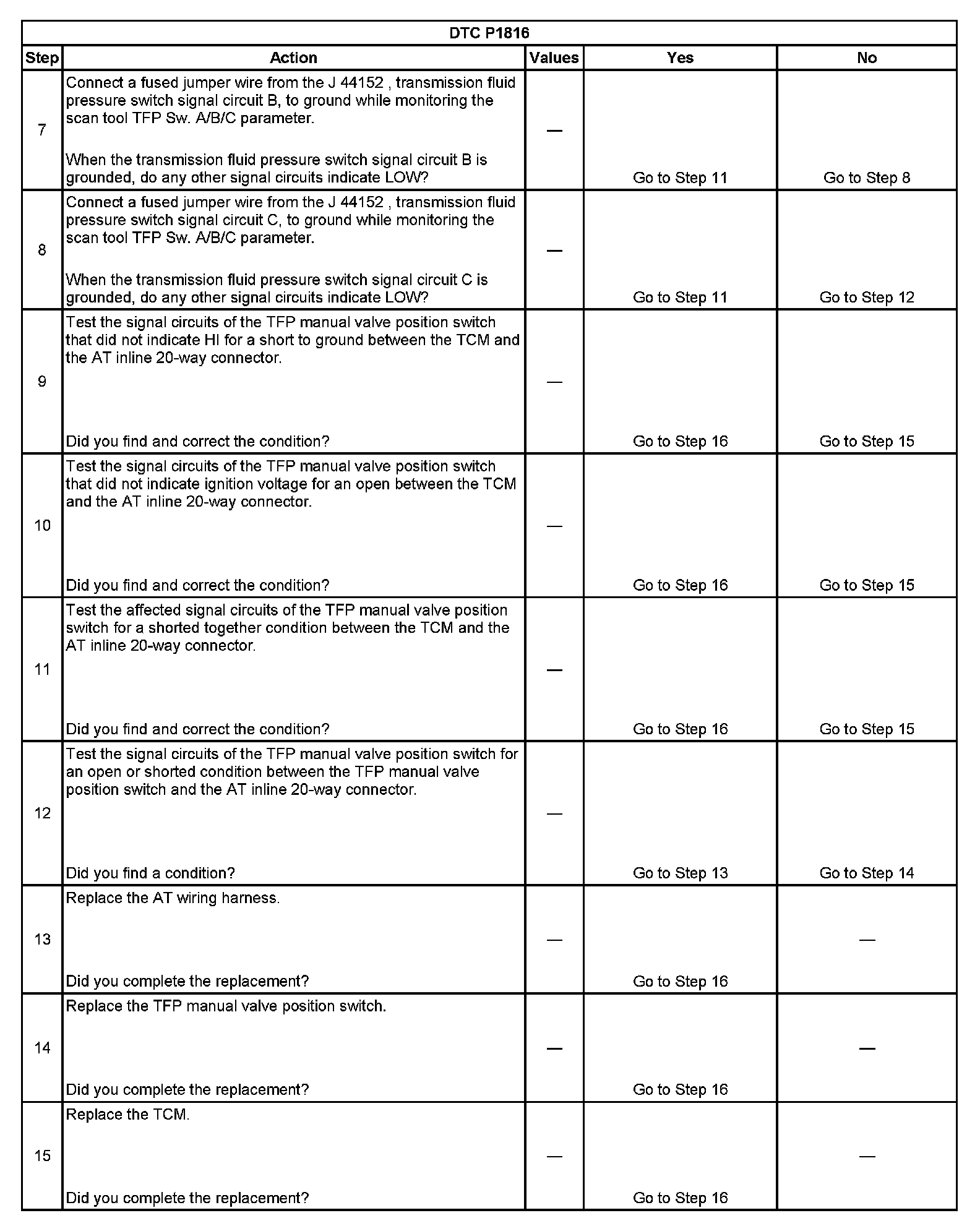 ^ No TFP DTCs P1810 or P1815.
