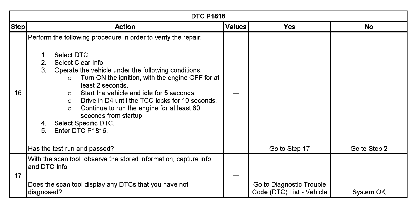 ^ The TCM stores DTC P1816 in TCM history during the second consecutive trip in which the Conditions for Setting the DTC are met.
