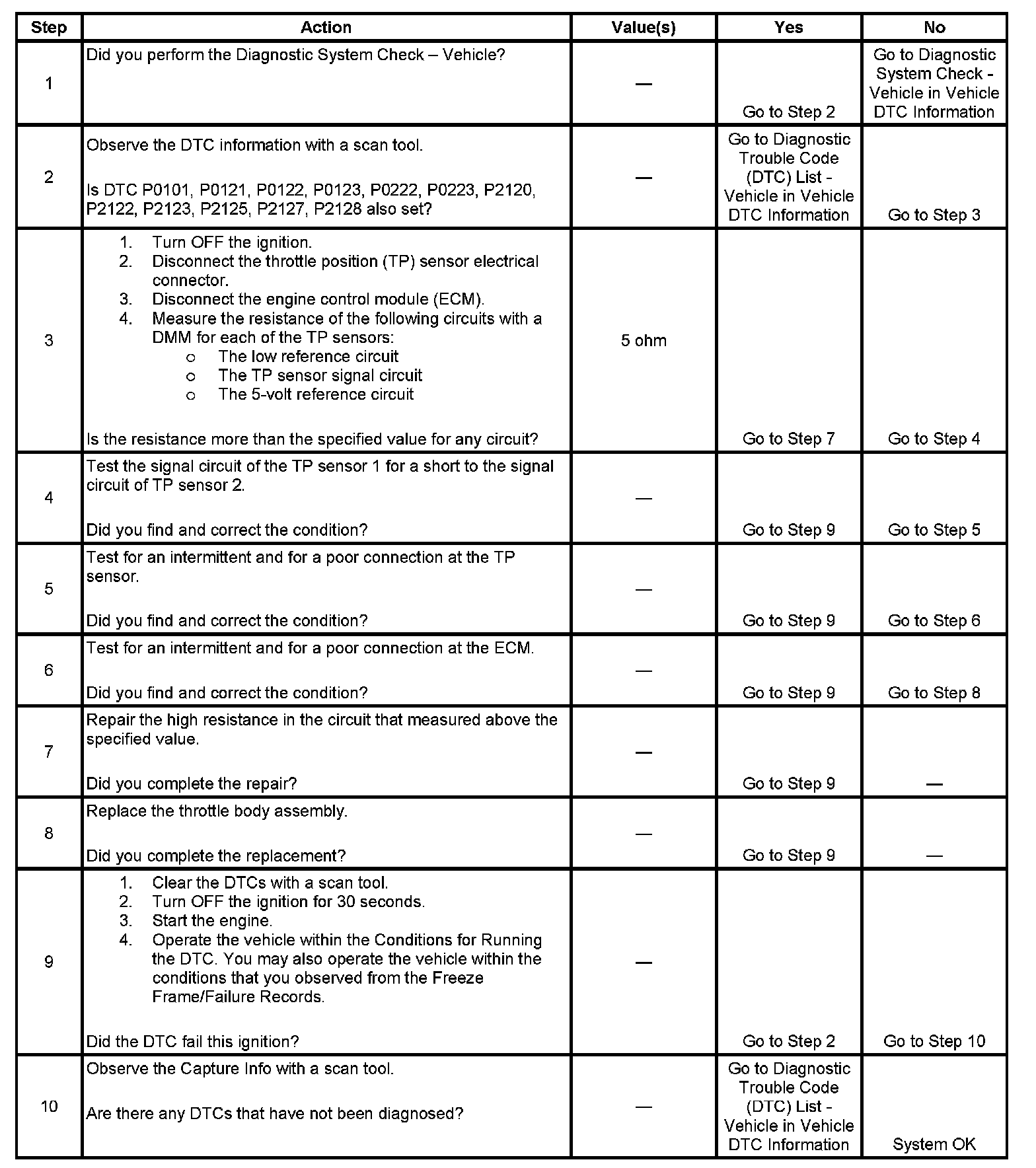 - DTCs P0122, P0123, P0222, P0223, P0601, P0602, P0603, P0604, P0606, P0607, P0641, P0651 are not set.