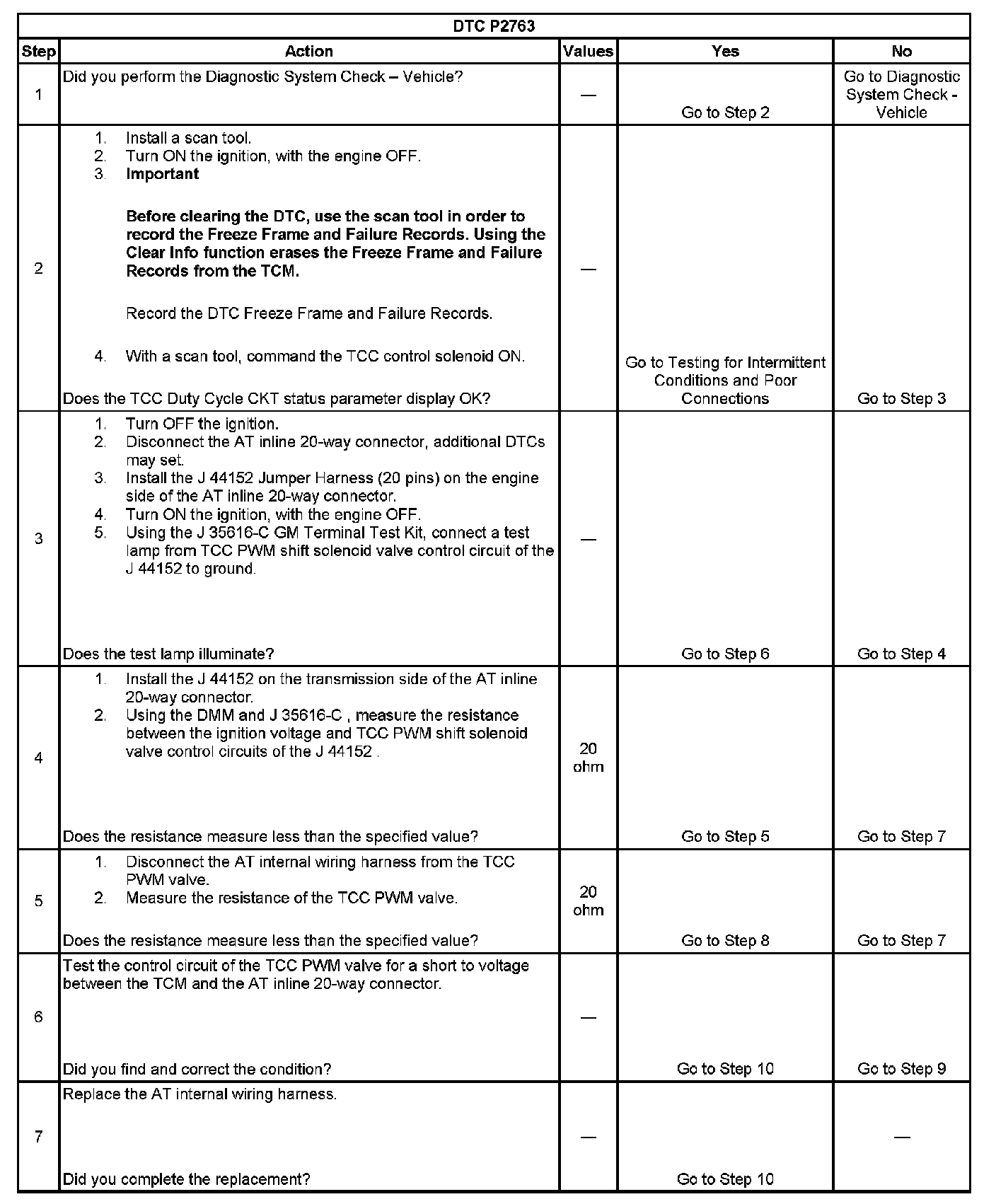 DTC P2763 Torque Converter Clutch (TCC) Pressure Control (PC) Solenoid Control Circuit High Voltage