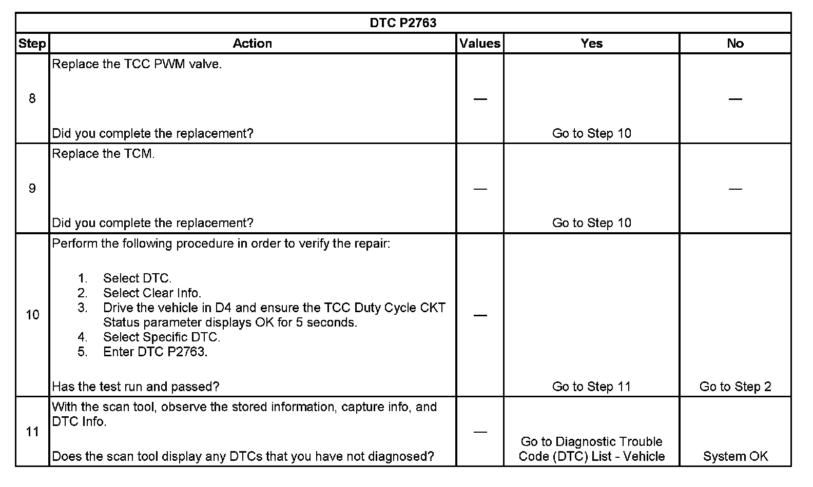 ^ The TCM stores DTC P2763 in TCM history.