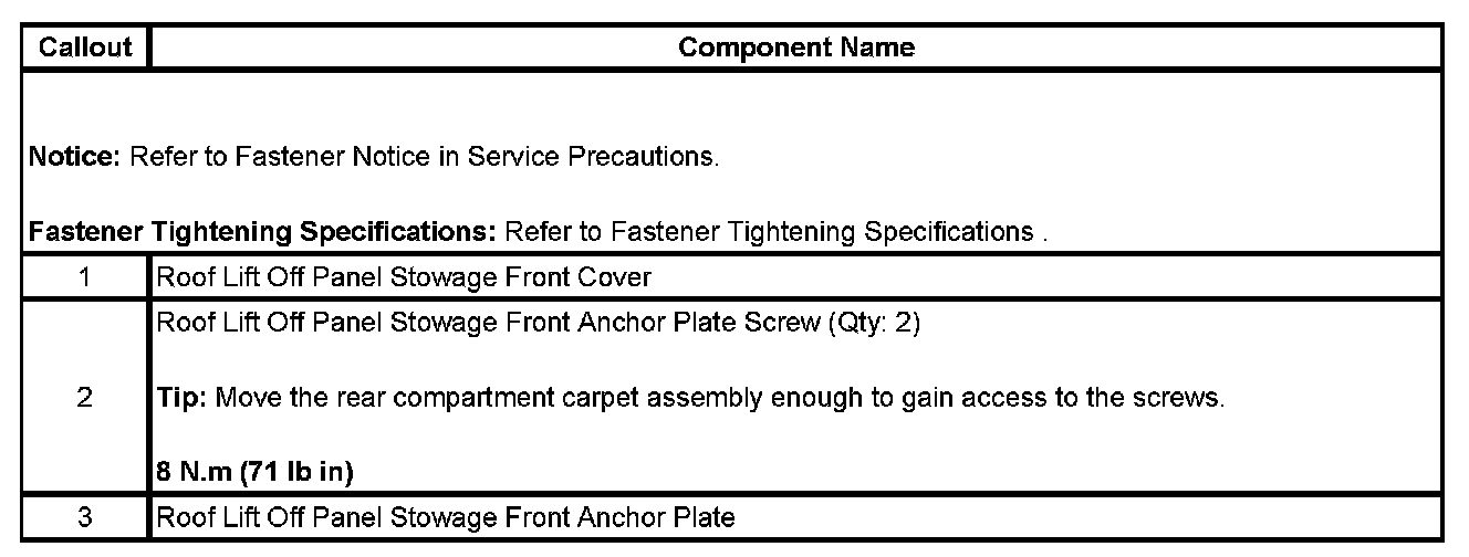 Mounting Plate - Roof Lift Off Panel Front Stowage