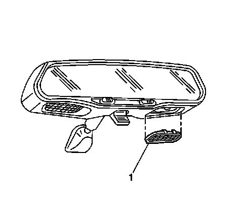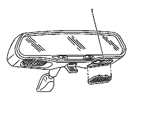 1. Remove the lamp lens from the mirror housing.Pry carefully with a small, flat-bladed screwdriver at the rear edge (1) of the lens, furthest from the windshield.