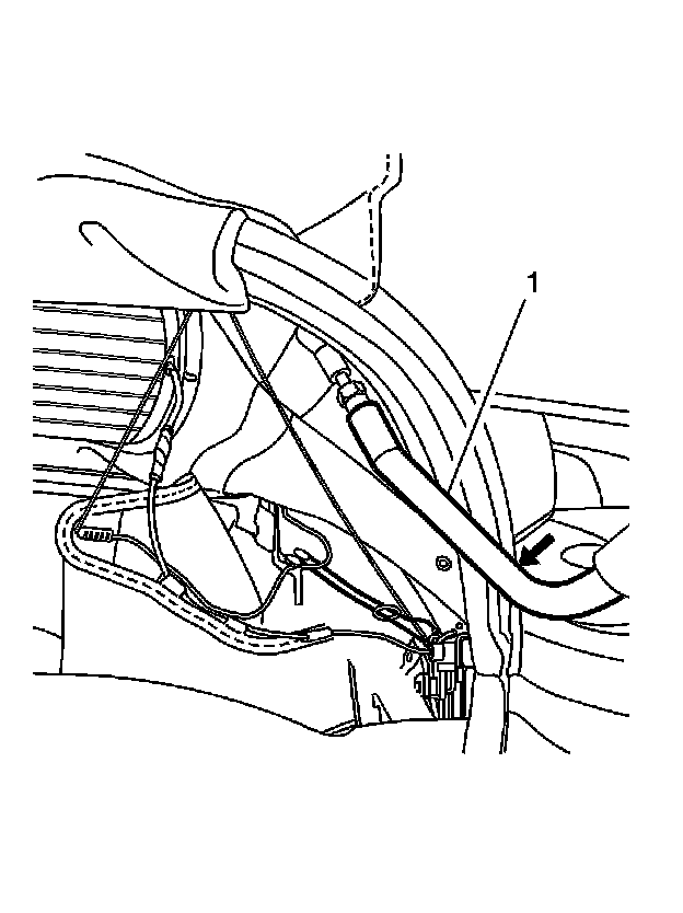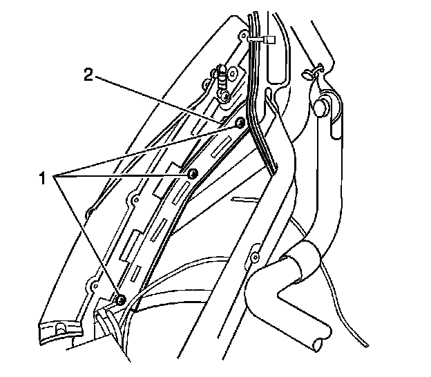 6. If the vehicle has a power folding top, do the following: To gain access to the folding top switch, remove the interior trim at the top of the B pillar. Remove the screw (1) from the switch and set aside.