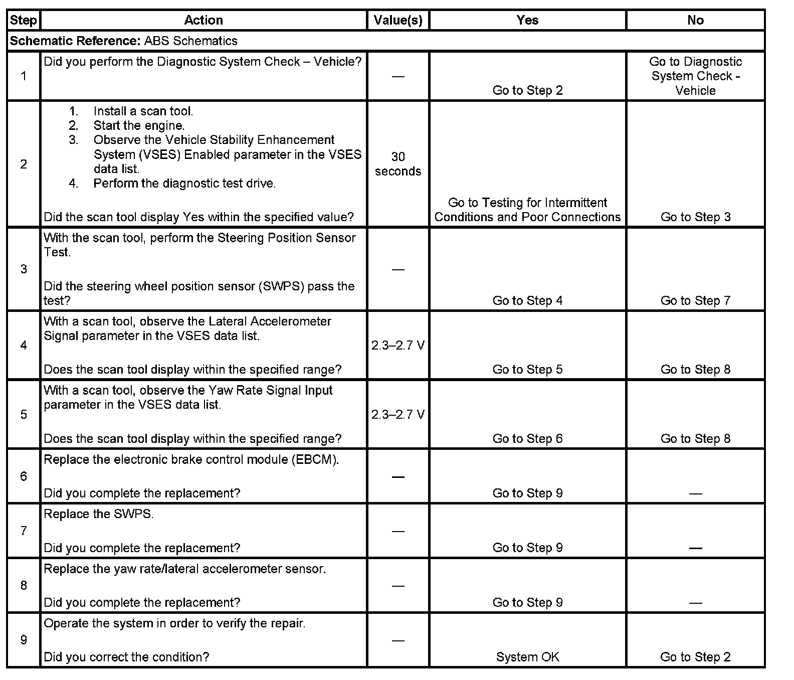 3. Perform the Steering Position Sensor Test in order to verify if the steering wheel position sensor (SWPS) is operating properly.