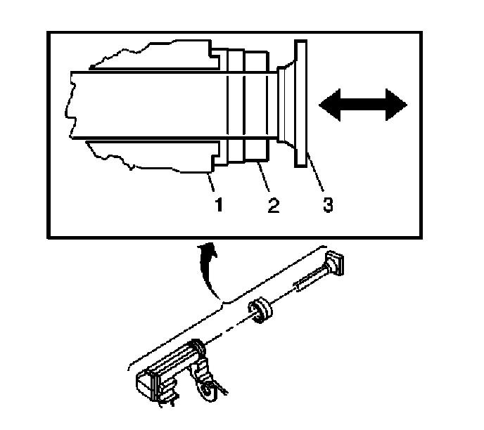 4. Inspect the caliper slide pins (3) by gently pulling outward, without disengaging the slides from the boots, then pushing inward, and observe for the following: