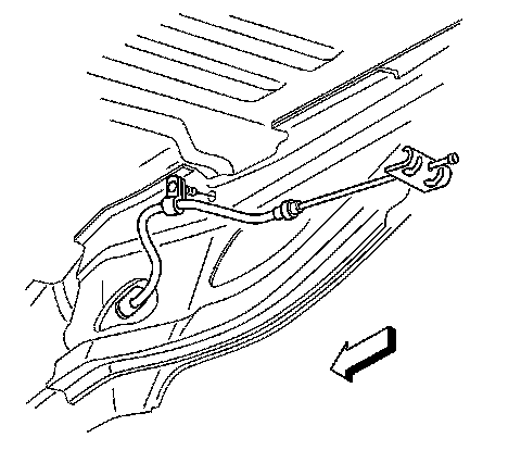6. Remove the front park brake cable bracket from the tunnel.