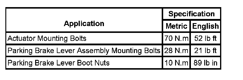 Parking Brake System: Specifications