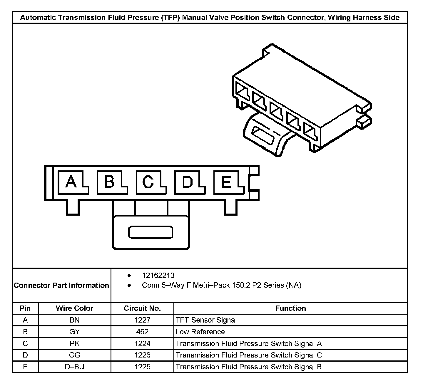 Automatic Transmission Fluid Pressure (TFP) Manual Valve Position Switch Connector, Wiring Harness Side: