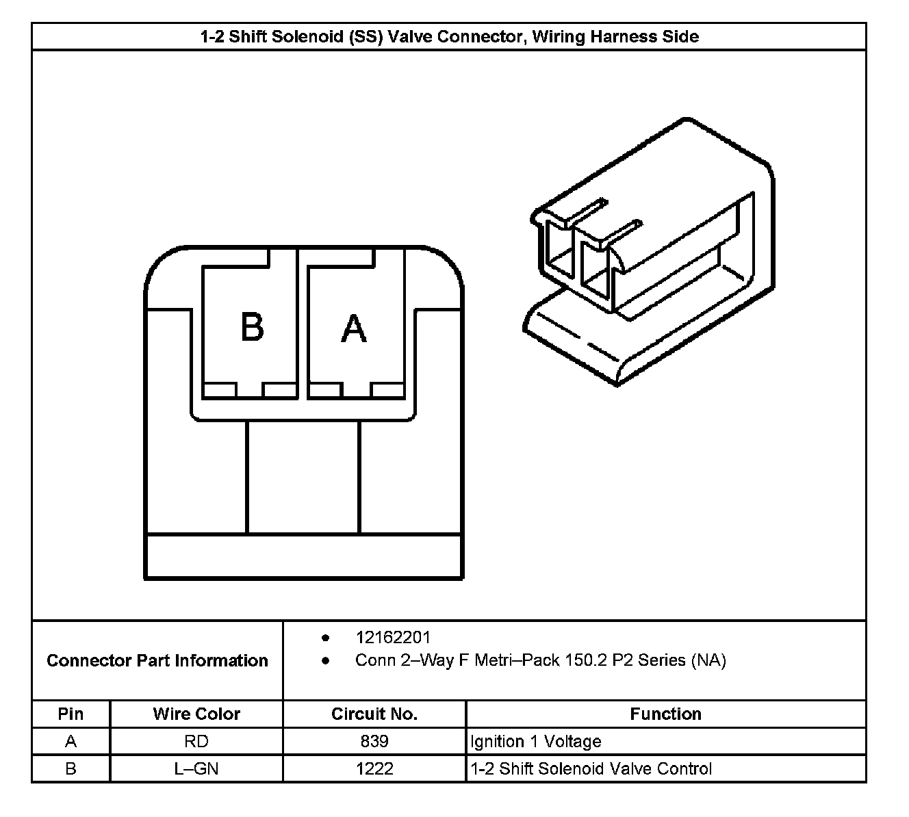 1-2 Shift Solenoid (SS) Valve Connector, Wiring Harness Side: