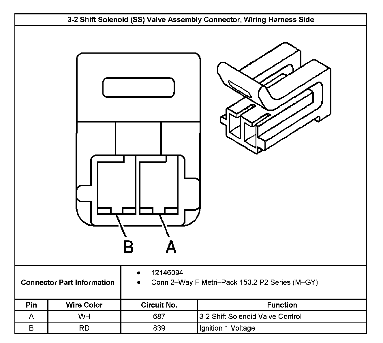 3-2 Shift Solenoid (SS) Valve Assembly Connector, Wiring Harness Side: