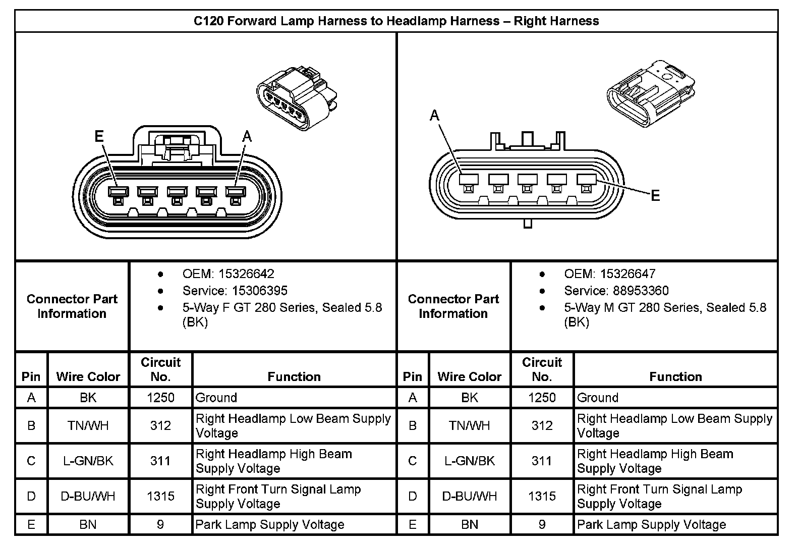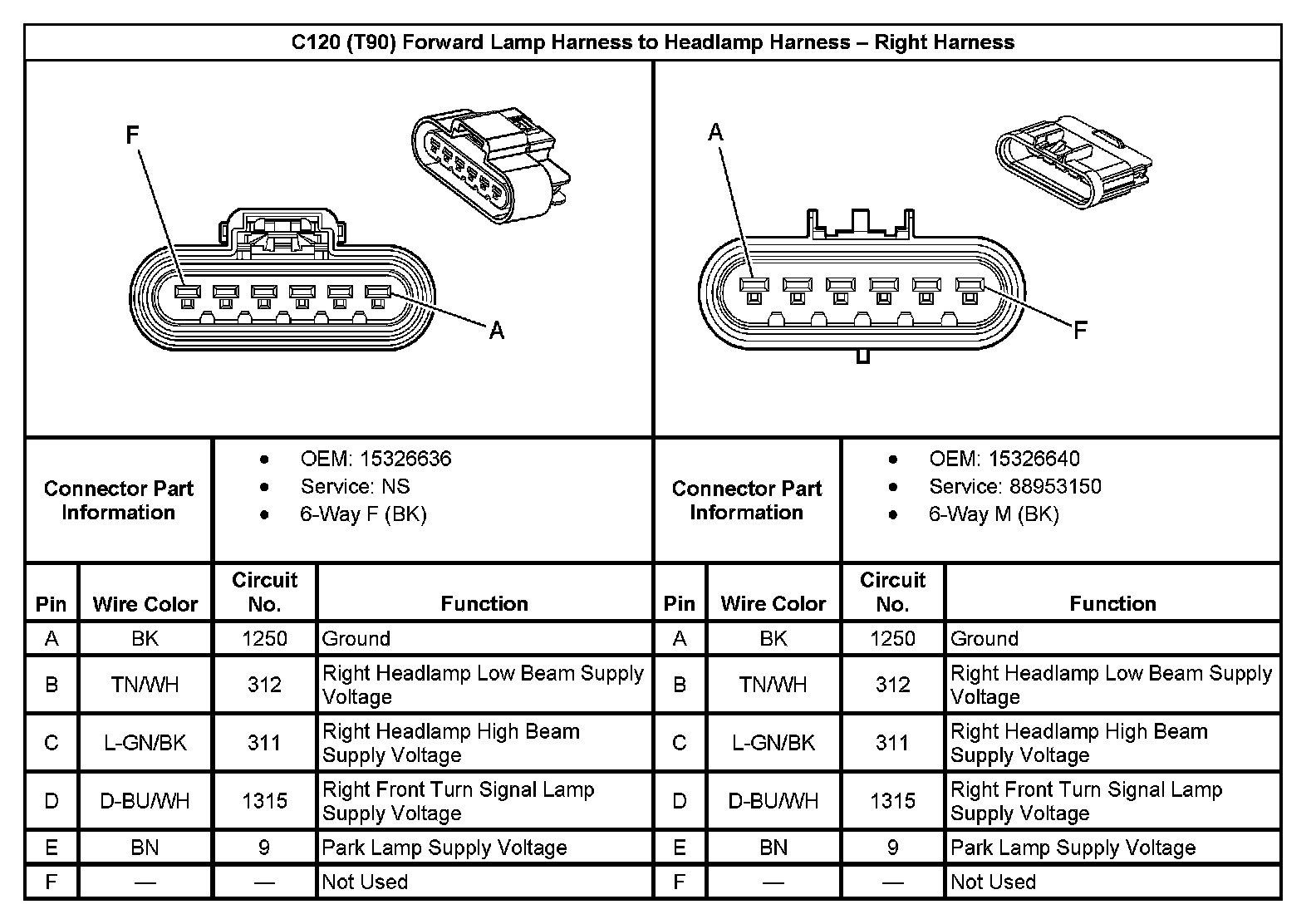 C120 (With RPO Code T90) Forward Lamp Harness To Headlamp Harness - Right Harness: