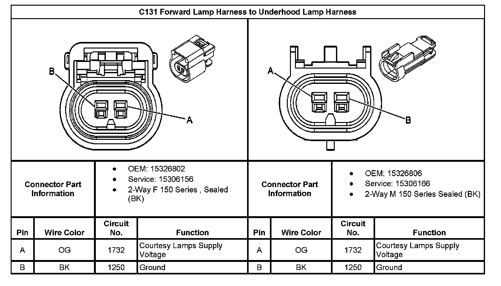 C131 Forward Lamp Harness To Underhood Lamp Harness: