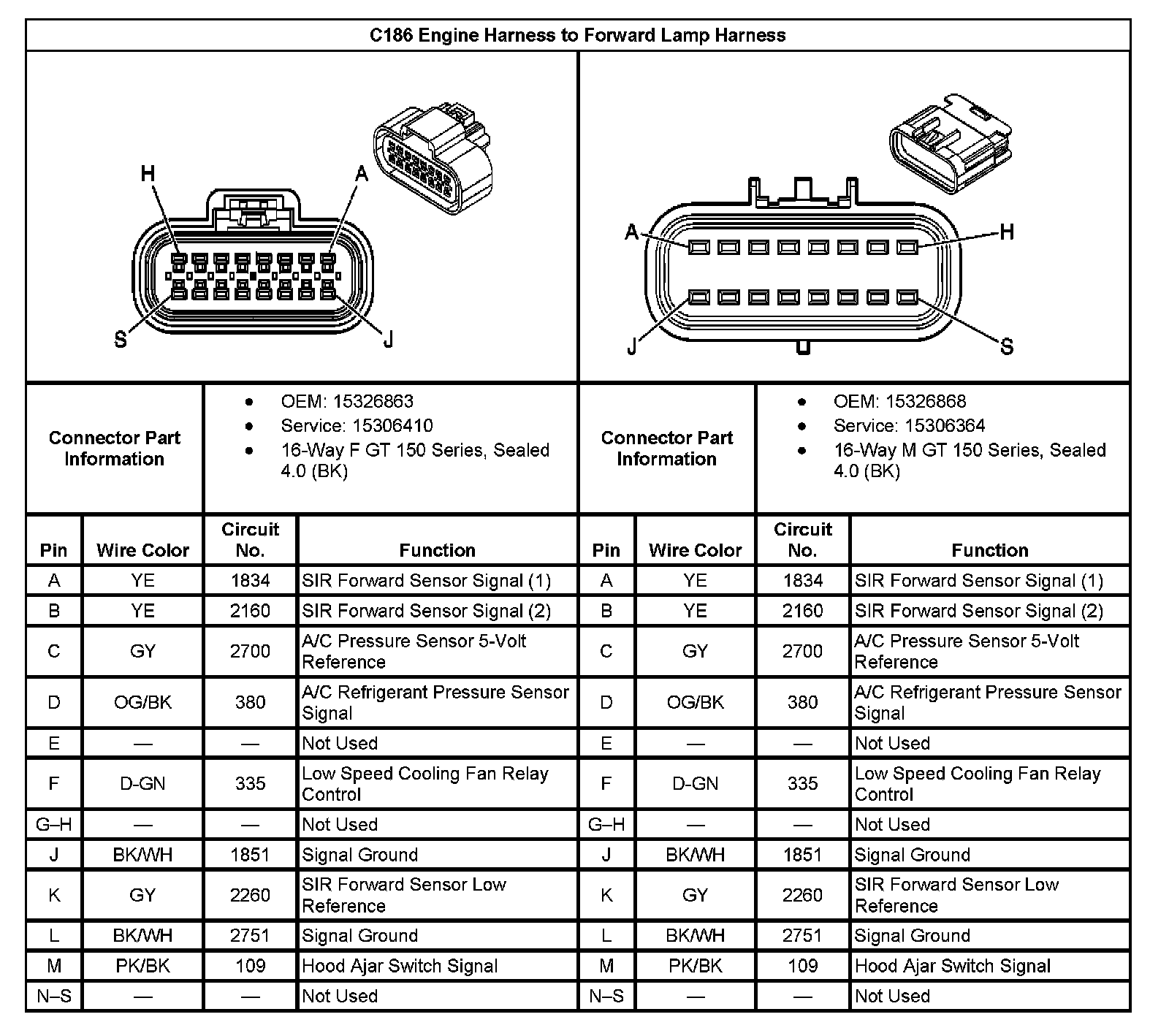 C186 Engine Harness To Forward Lamp Harness: