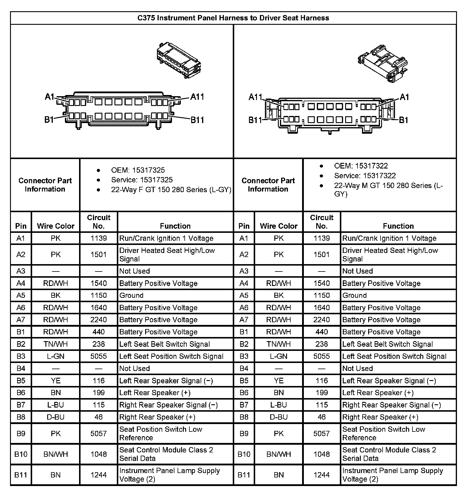 C375 Instrument Panel Harness To Driver Seat Harness: