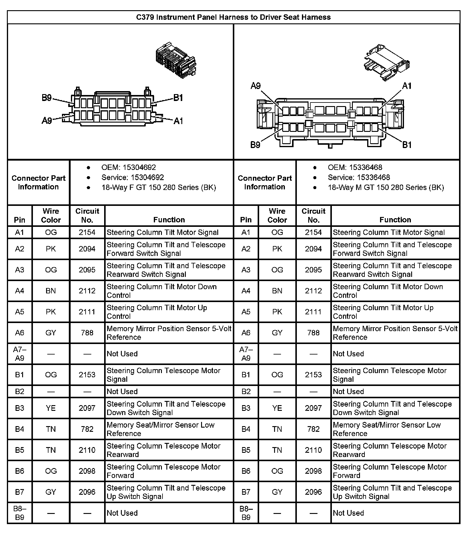 C379 Instrument Panel Harness To Driver Seat Harness: