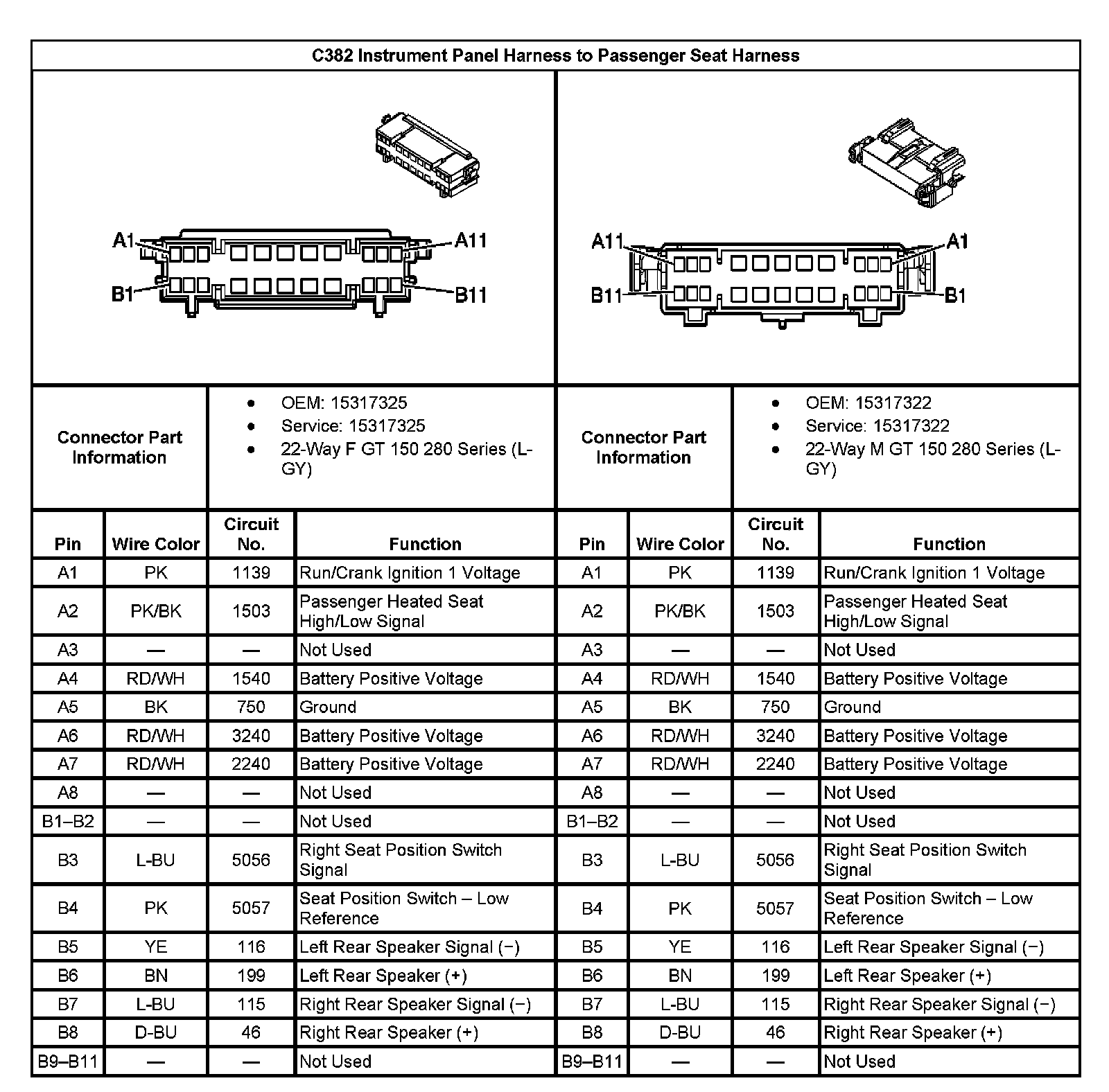 C382 Instrument Panel Harness To Passenger Seat Harness: