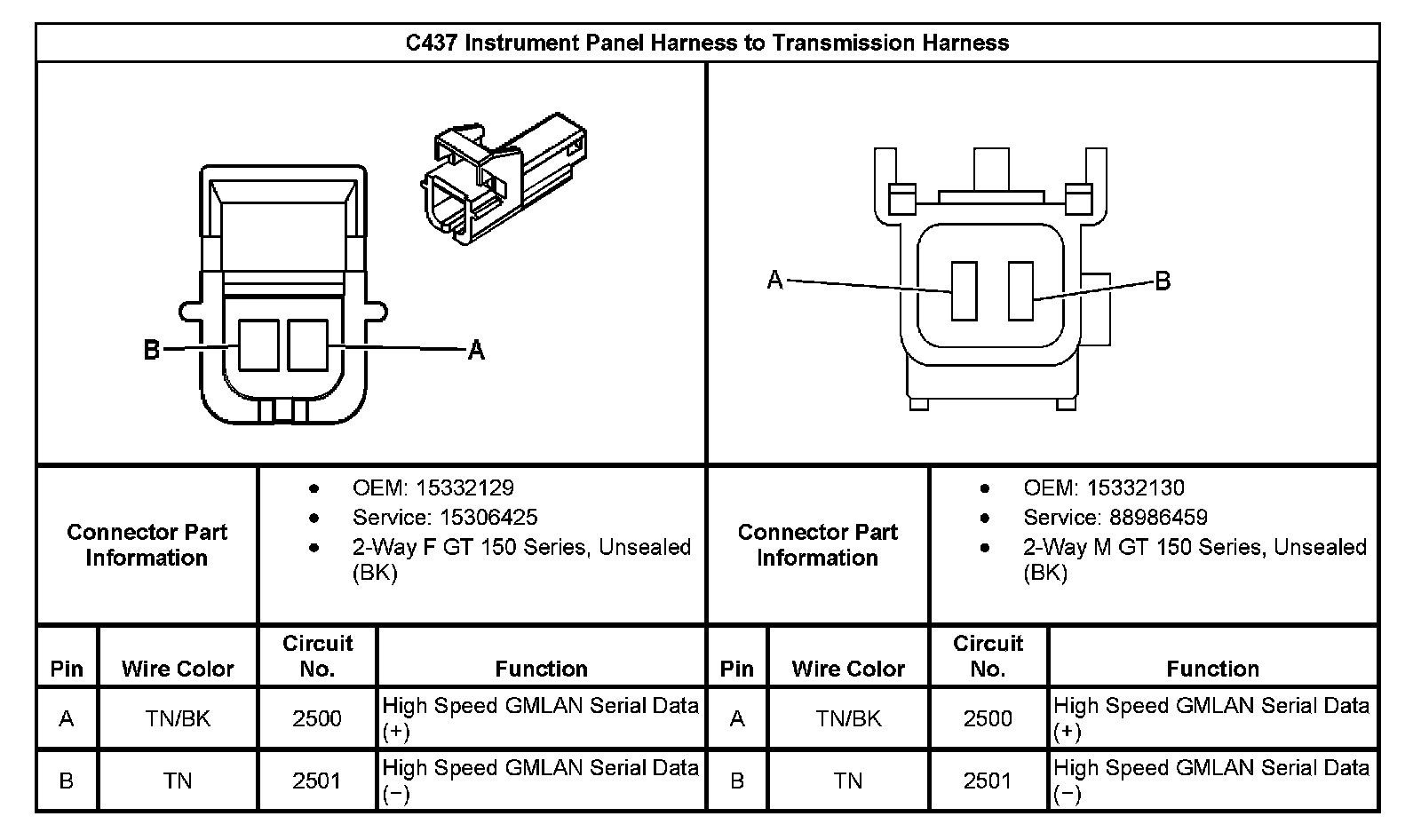 C437 Instrument Panel Harness To Transmission Harness: