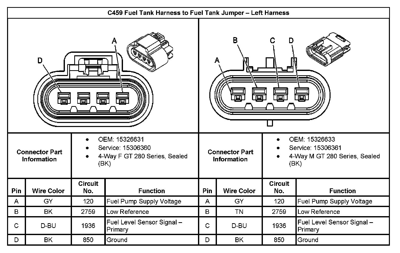 C459 Fuel Tank Harness To Fuel Tank Jumper - Left Harness: