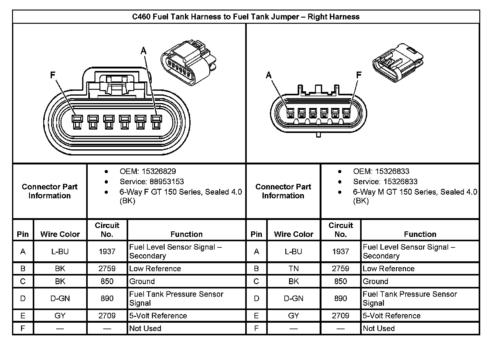 C460 Fuel Tank Harness To Fuel Tank Jumper - Right Harness: