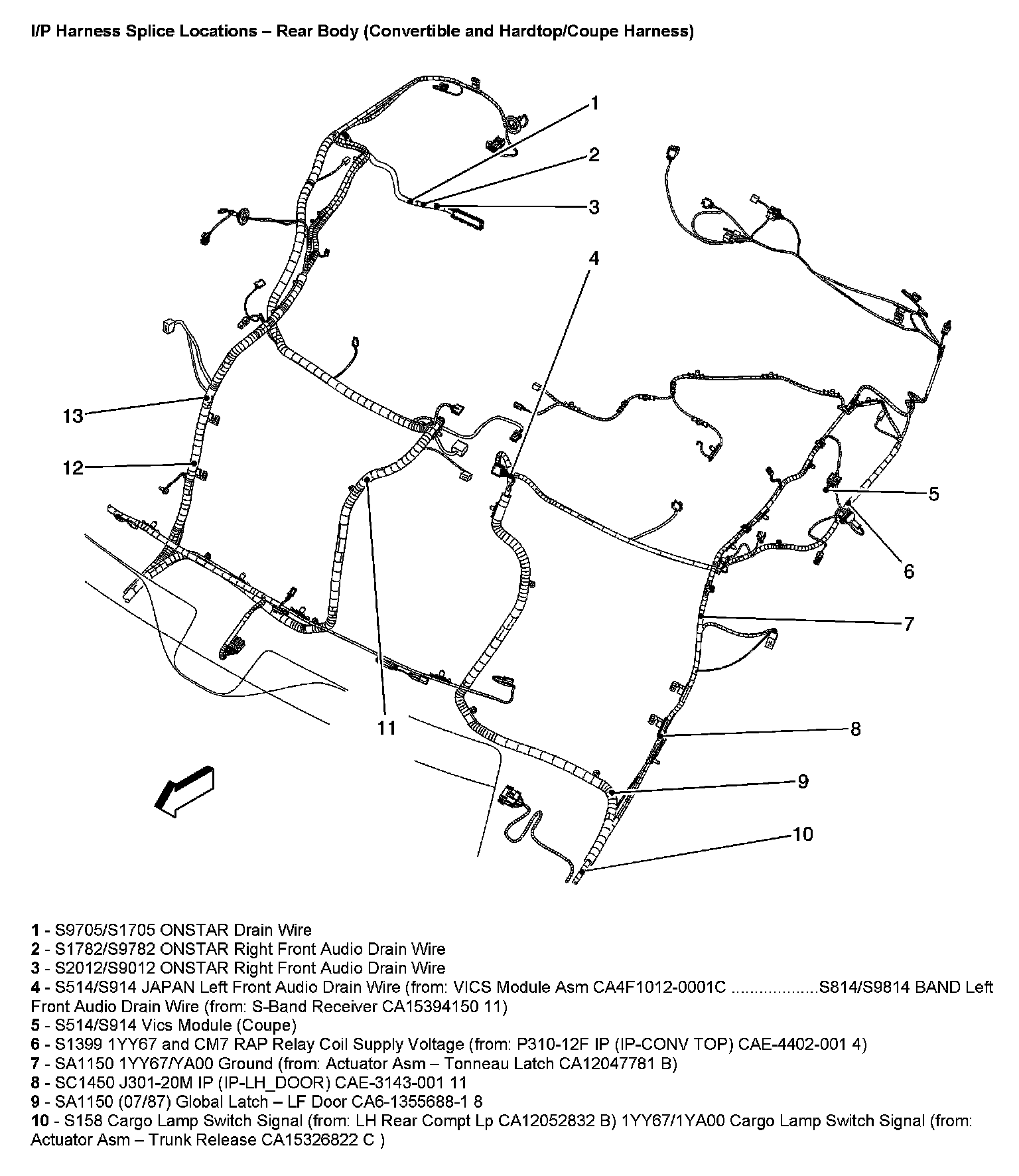 I/P Harness Splice Locations - Rear Body (Convertible And Hardtop/Coupe Harness):