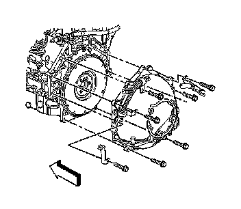 48. Remove bolts attaching the transmission wire harness bracket to the flywheel housing.
