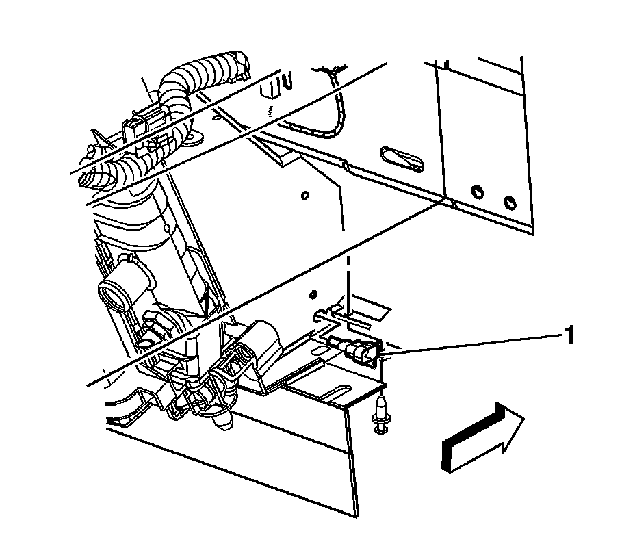 3. Remove the push-in retainer securing the ambient air temperature sensor to the lower RH side of the radiator support.