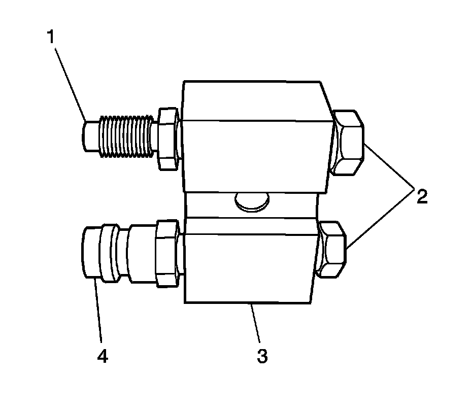 3. Install the J 45268-7 (4) onto the discharge side of the J 45268-10 (3).